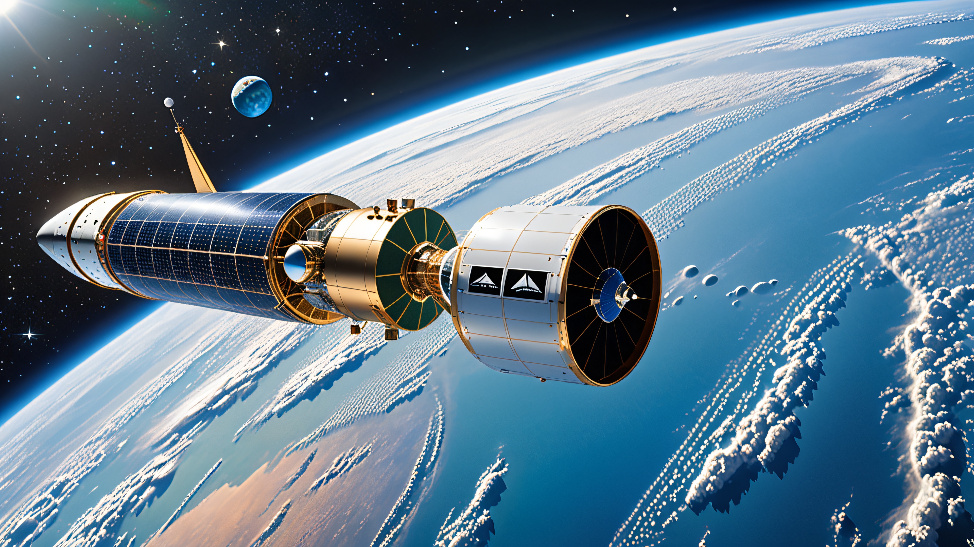 4K Spacecraft Wallpaper: AGN System Orbits Earth – Futuristic Space Scene