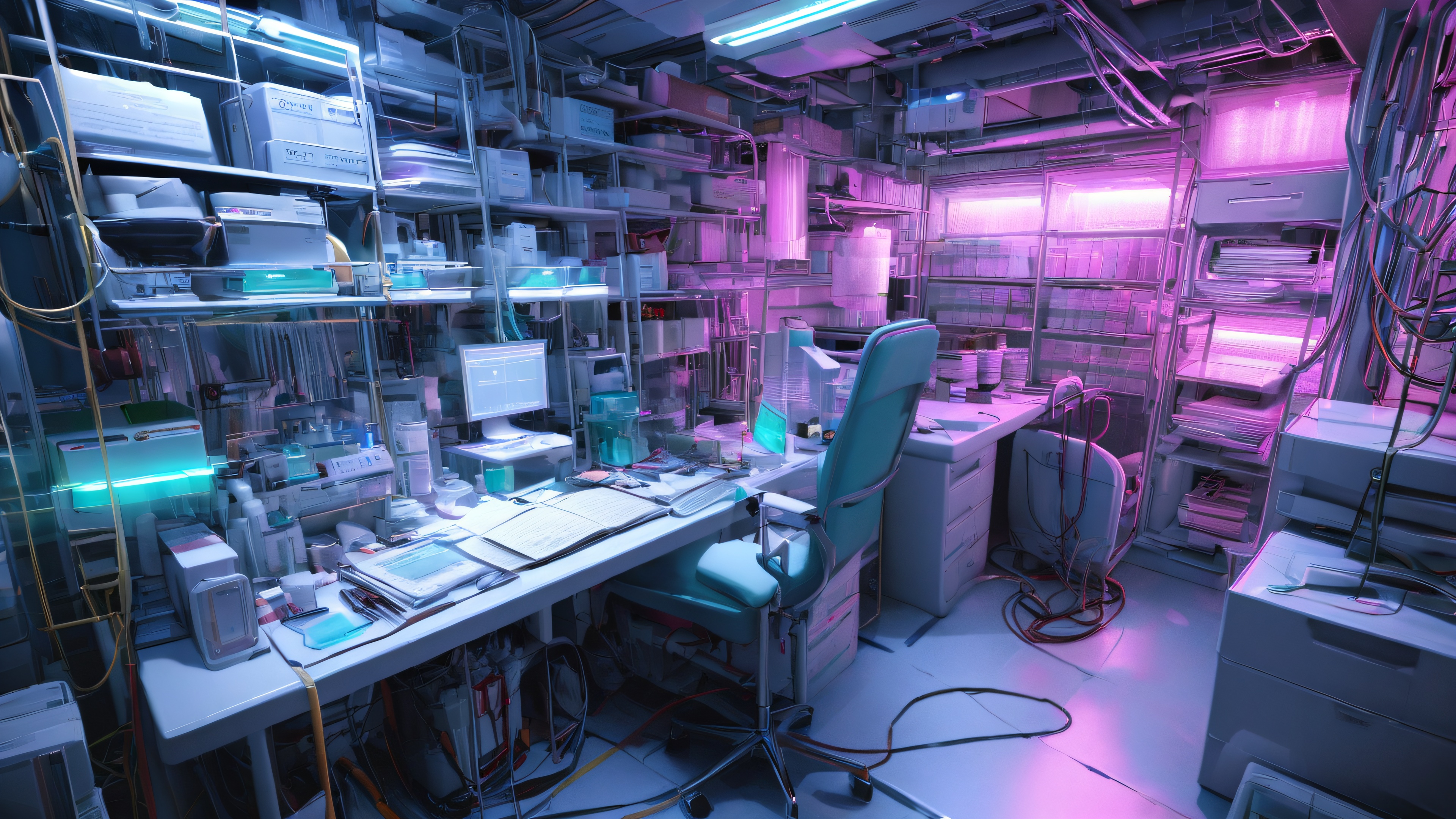 This stunning 4K anime wallpaper features a hyper-realistic depiction of a medicine student in a state of intense concentration, surrounded by scattered medical texts and equipment in a cramped and cluttered hospital storage room. The dim lighting creates a sense of clinical sterility, with the soft glow of the single fluorescent light casting an eerie light on the subject’s face and the surrounding environment. The muted pastel color palette, accented by bold colors of medical equipment, adds to the sense of realism and attention to detail.
