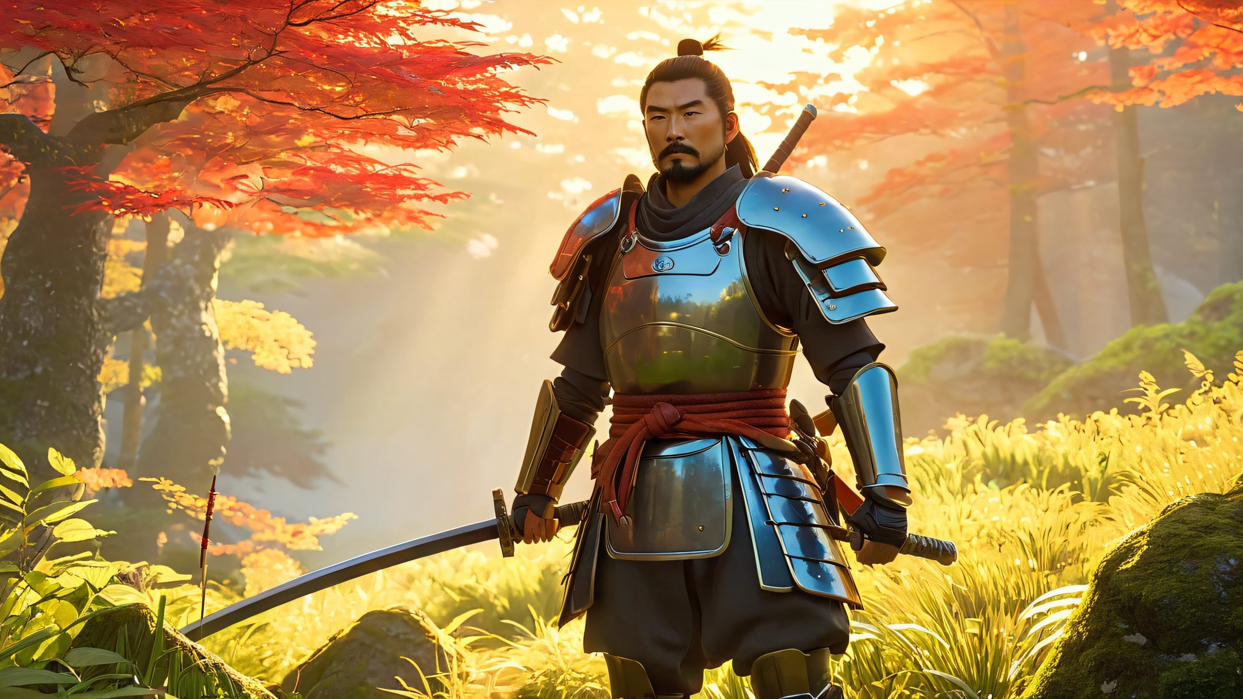 Mysterious Ronin in Ancient Forest 4K Wallpaper Free Download: