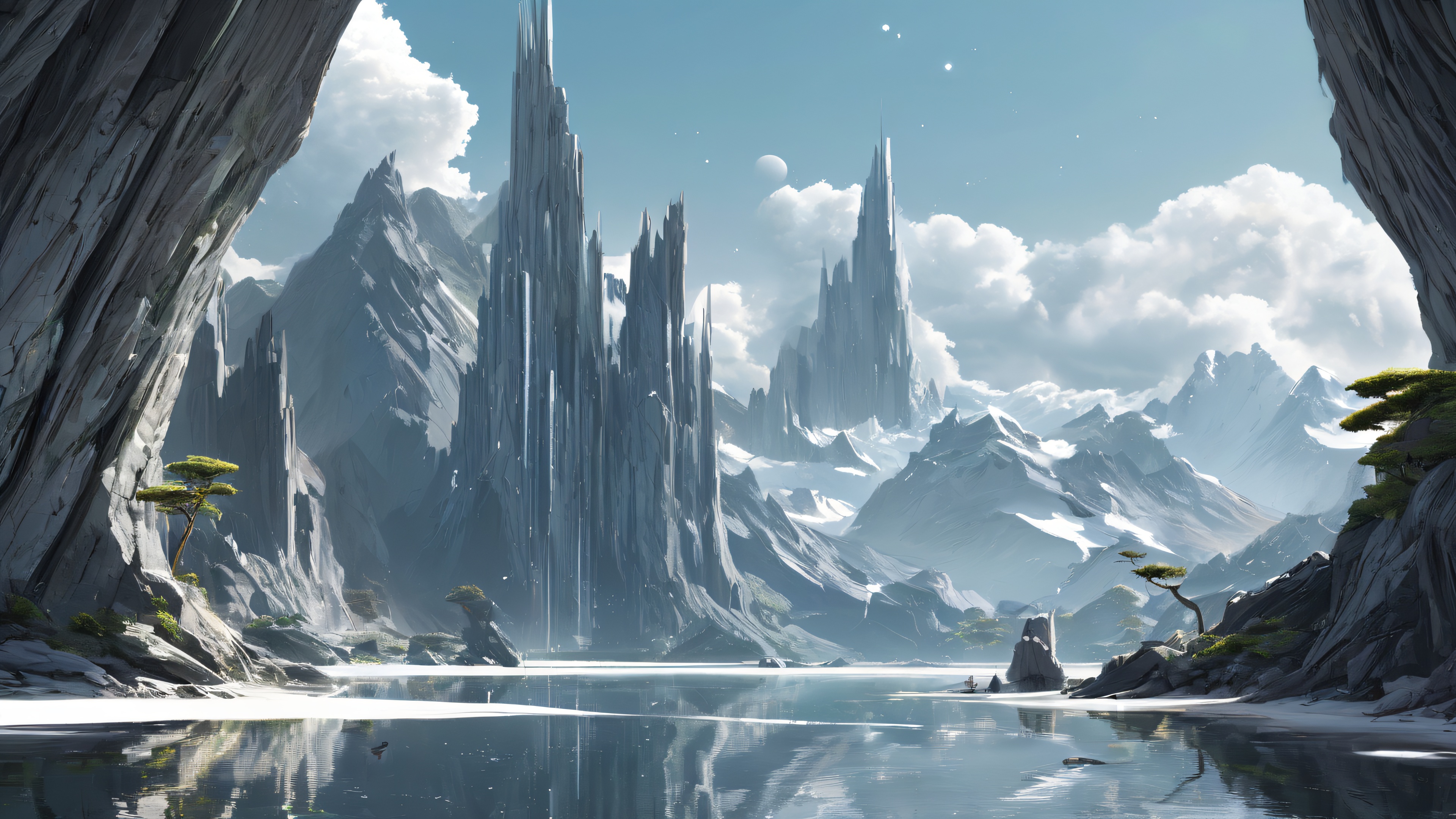 A swirling vortex of iridescent mist encircles the mystical realm of Artemis, where ethereal moonlit glaades shimmer like stardust on a velvet night.