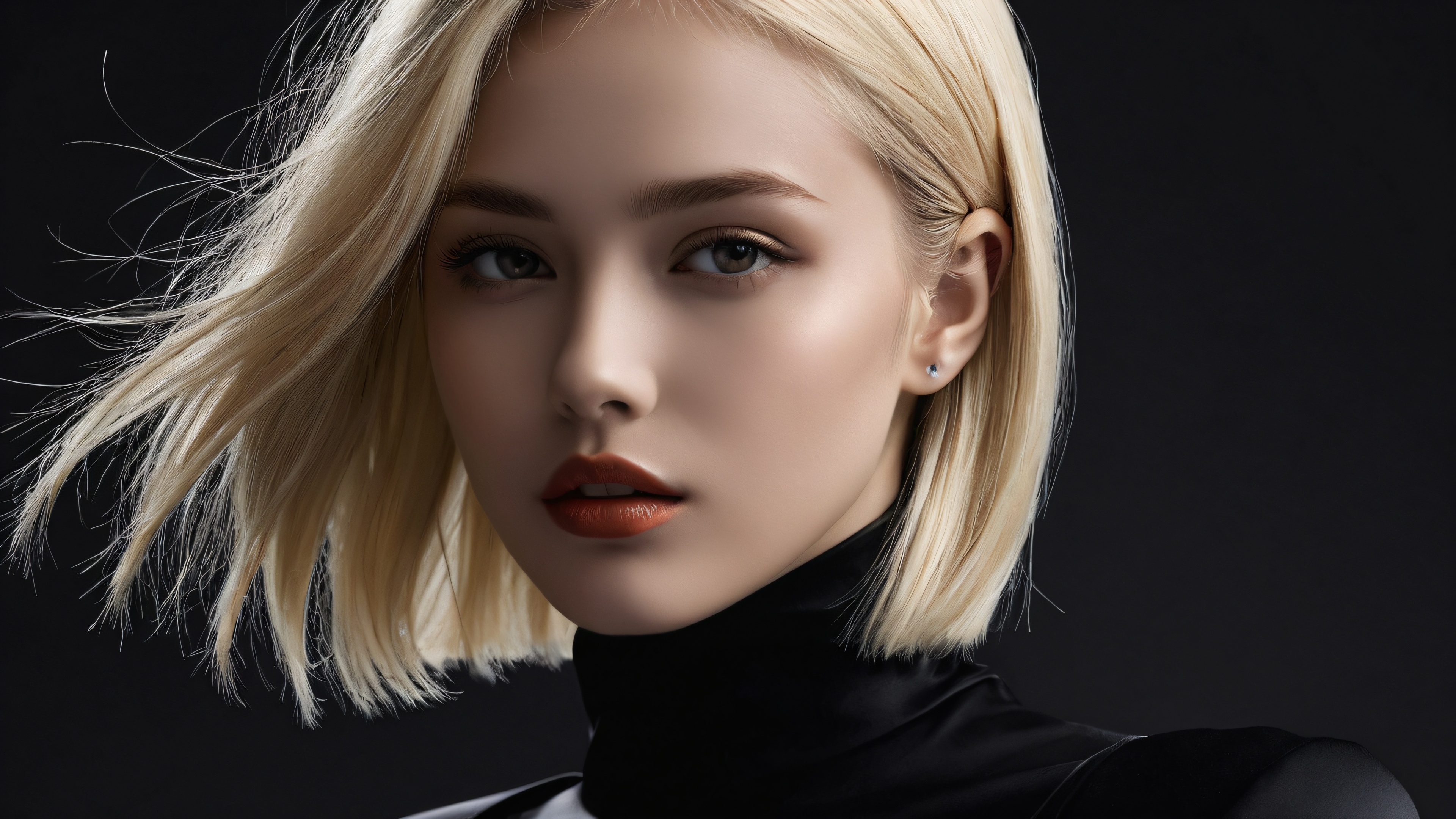 A breathtaking desktop wallpaper of Girl, Perfectly clean vast pure void, extreme depth of field, Award-winning digital art, pristine clarity, SLEEK DARK MODE AESTHETIC. Deep perfect blacks, striking crisp contrast, and elegant luminescent accents., [‘Blonde’, ‘Light Skin’], 16:9 aspect ratio, elegant low-key lighting, deep perfect blacks, striking contrast, sleek dark mode aesthetic, luminescent accents, deep rich colors, award-winning digital art, epic breathtaking scale, stunning visual impact, perfect composition, highly textured surfaces, intricate micro-details, physically based rendering, macOS wallpaper aesthetic, masterpiece, highest quality, highly detailed, 8k resolution.