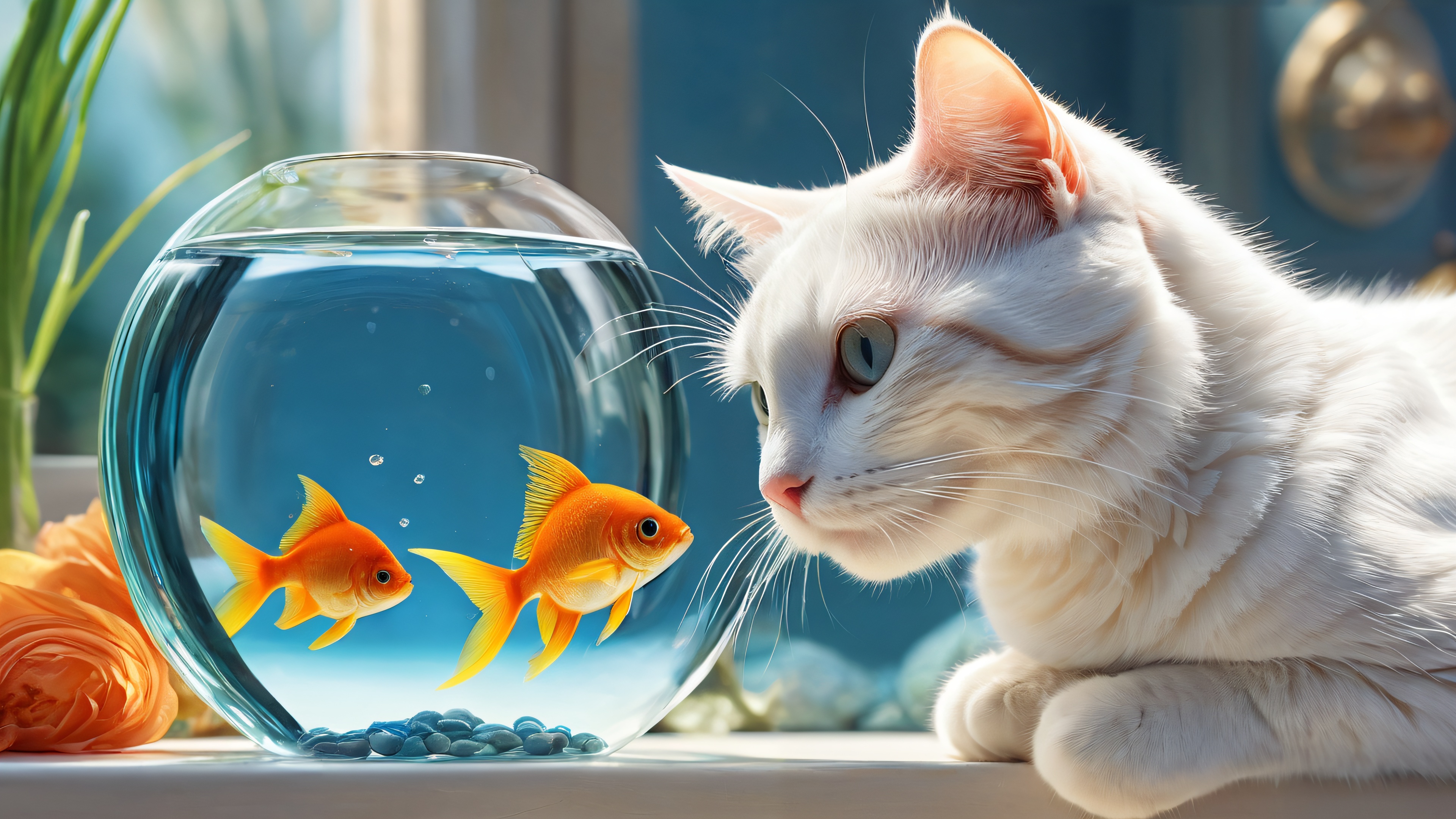 A breathtaking desktop wallpaper of Cat Hugging Fish, Perfectly clean vast pure void, extreme depth of field, bustling market scene, Award-winning digital art, pristine clarity, vibrant colors, Ethereal lighting: radiant, brilliant colors, ray traced reflections, and pristine clarity. Bright and airy., [‘Warm Colors’, ‘Bright Whites’, ‘Sleek Silvers’], 16:9 aspect ratio, ethereal lighting, radiant, brilliant colors, ray traced reflections, pristine clarity, award-winning digital art, epic breathtaking scale, stunning visual impact, perfect composition, highly textured surfaces, intricate micro-details, physically based rendering, macOS wallpaper aesthetic, masterpiece, highest quality, highly detailed, 8k resolution.