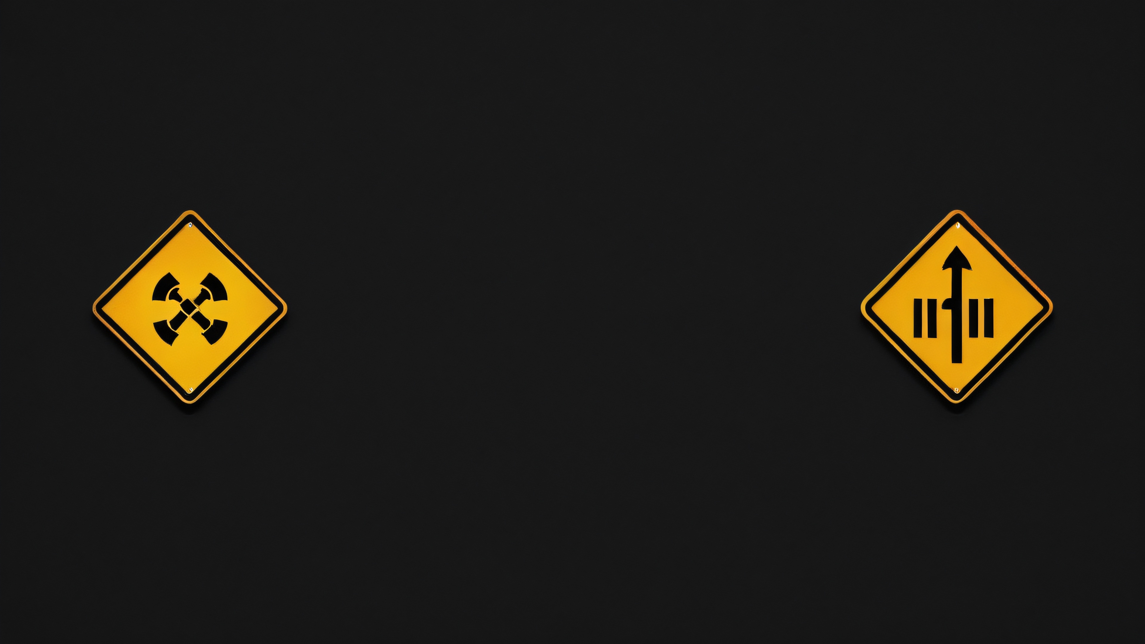 A breathtaking desktop wallpaper of Warning Signs, Perfectly clean vast pure void, extreme depth of field, Award-winning digital art, pristine clarity, SLEEK DARK MODE AESTHETIC. Deep perfect blacks, striking crisp contrast, and elegant luminescent accents., #3498db, 16:9 aspect ratio, elegant low-key lighting, deep perfect blacks, striking contrast, sleek dark mode aesthetic, luminescent accents, deep rich colors, award-winning digital art, epic breathtaking scale, stunning visual impact, perfect composition, highly textured surfaces, intricate micro-details, physically based rendering, macOS wallpaper aesthetic, masterpiece, highest quality, highly detailed, 8k resolution.