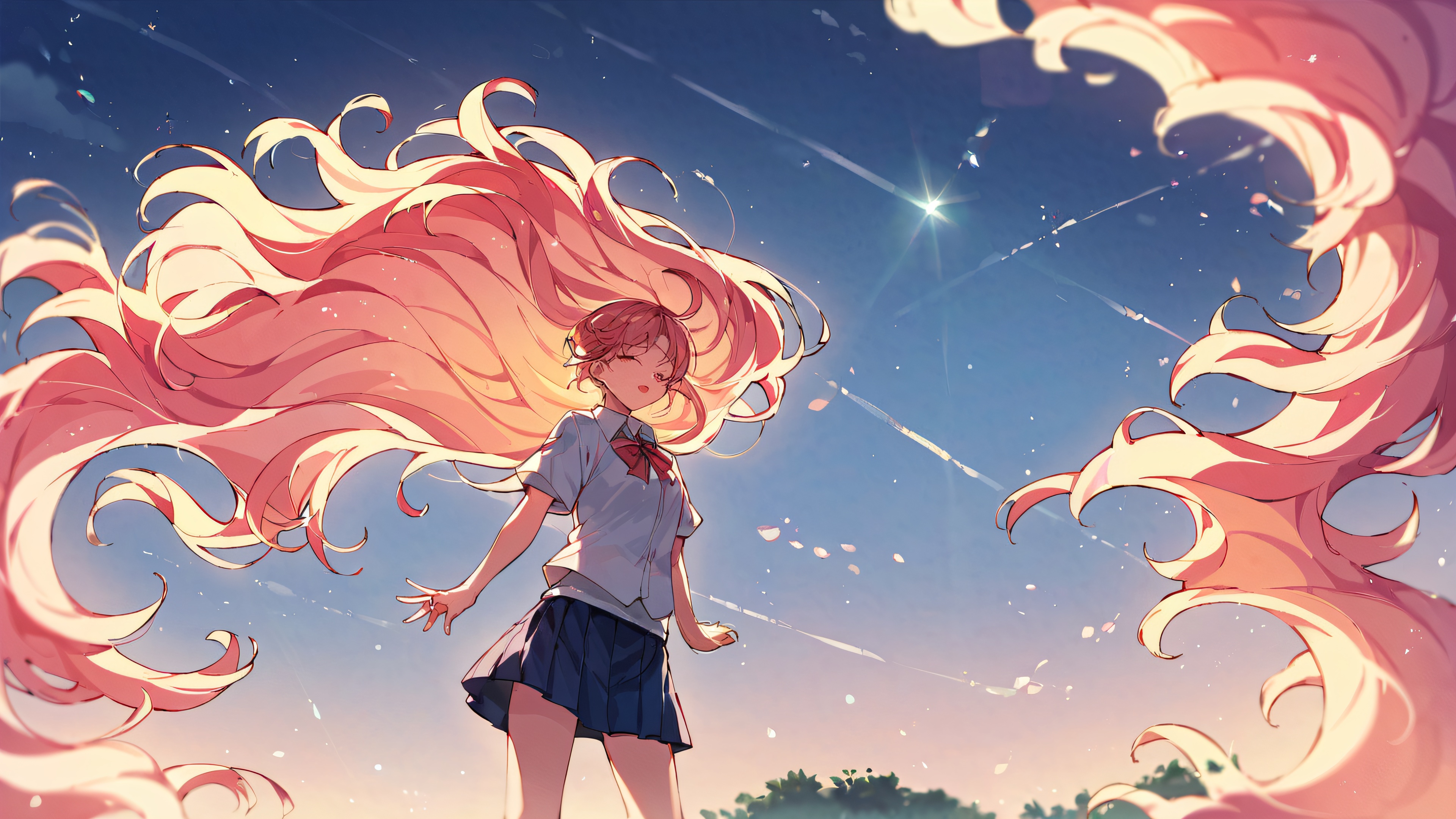 Stunning Anime Schoolgirl in Ethereal Glow Wallpaper Free Download: