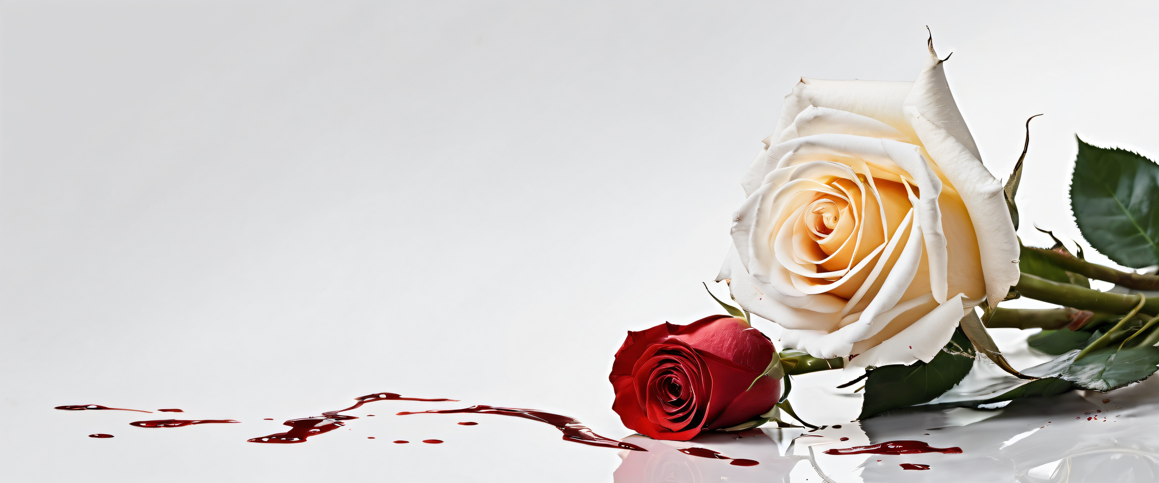 A breathtaking desktop wallpaper of James Bond, perfectly clean vast pure void, extreme depth of field, blood-stained white roses, scythe and hammer, award-winning digital art, pristine clarity, ETHEREAL LIGHTING. Strahlend, brilliant colors, ray traced reflections, und makellose Klarheit. Bright and airy., Reds and Whites, with hints of metallic, 21:9 ultrawide panoramic aspect ratio, epic wide shot, ätherische Beleuchtung, radiant, brilliant colors, ray traced reflections, pristine clarity, award-winning digital art, epic breathtaking scale, stunning visual impact, perfect composition, highly textured surfaces, intricate micro-details, physically based rendering, macOS wallpaper aesthetic, Meisterwerk, highest quality, highly detailed, 8k resolution.