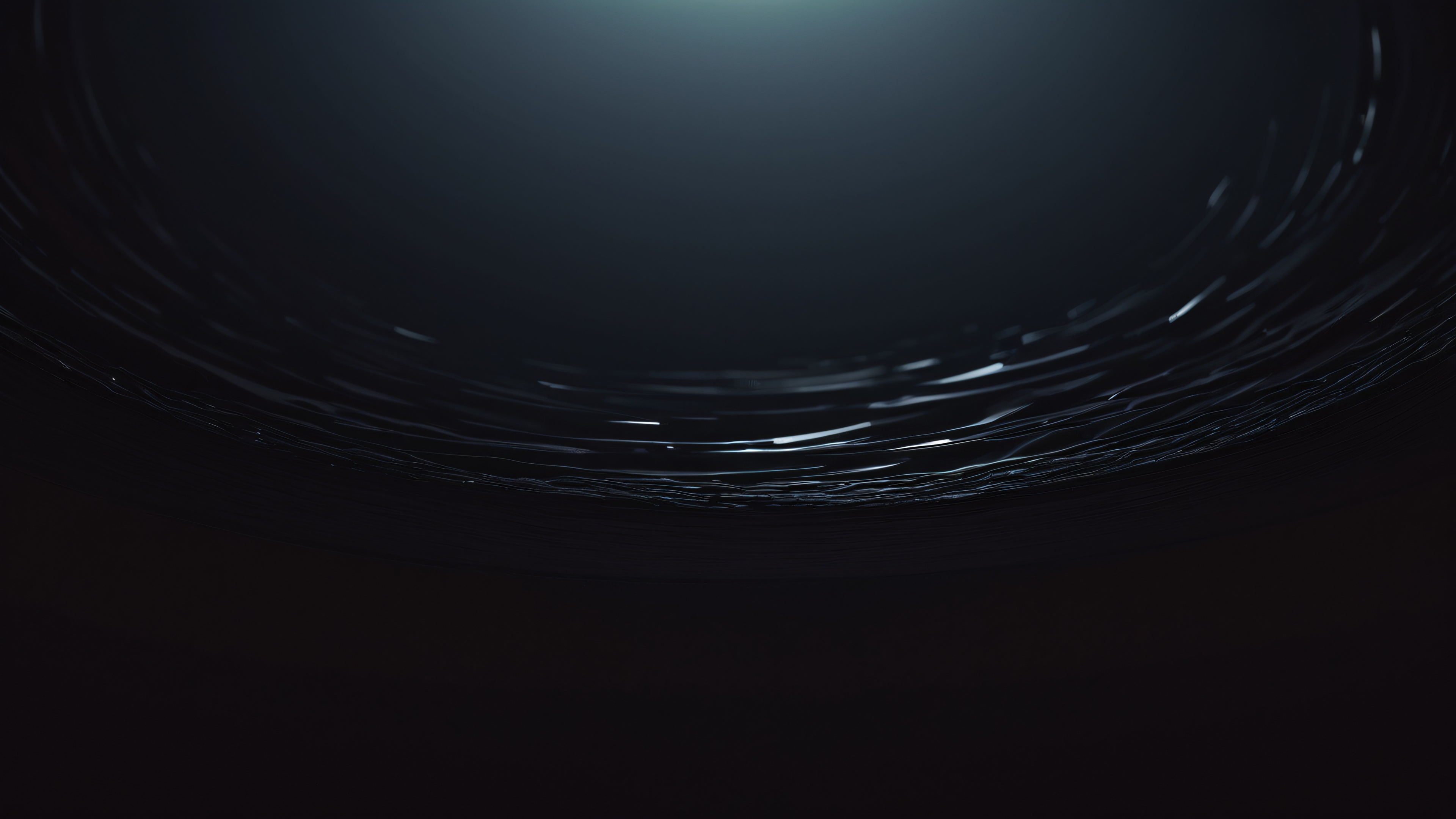 A breathtakingly detailed cyberpunk scene unfolds, showcasing a dark and foreboding cityscape. Towering skyscrapers pierce the night sky, their reflections rippling across the surface of a dark, mysterious pool of water. Neon lights dance and swirl, casting an otherworldly glow on the darkened streets below.