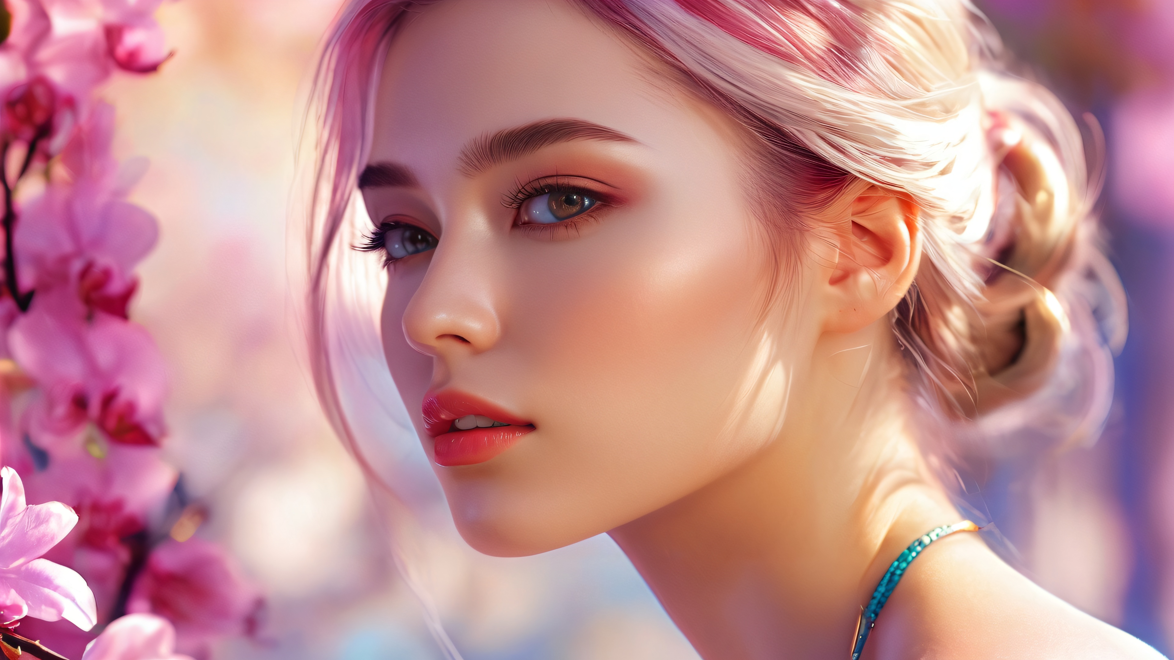 This breathtaking wallpaper features a serene and radiant depiction of a woman set against the backdrop of an infinite, shimmering void. The subject is bathed in ethereal lighting that accentuates her elegance, with intricate textures and micro-details rendering the scene with incredible precision. The overall effect is one of stunning visual impact, perfect composition, and masterful execution.