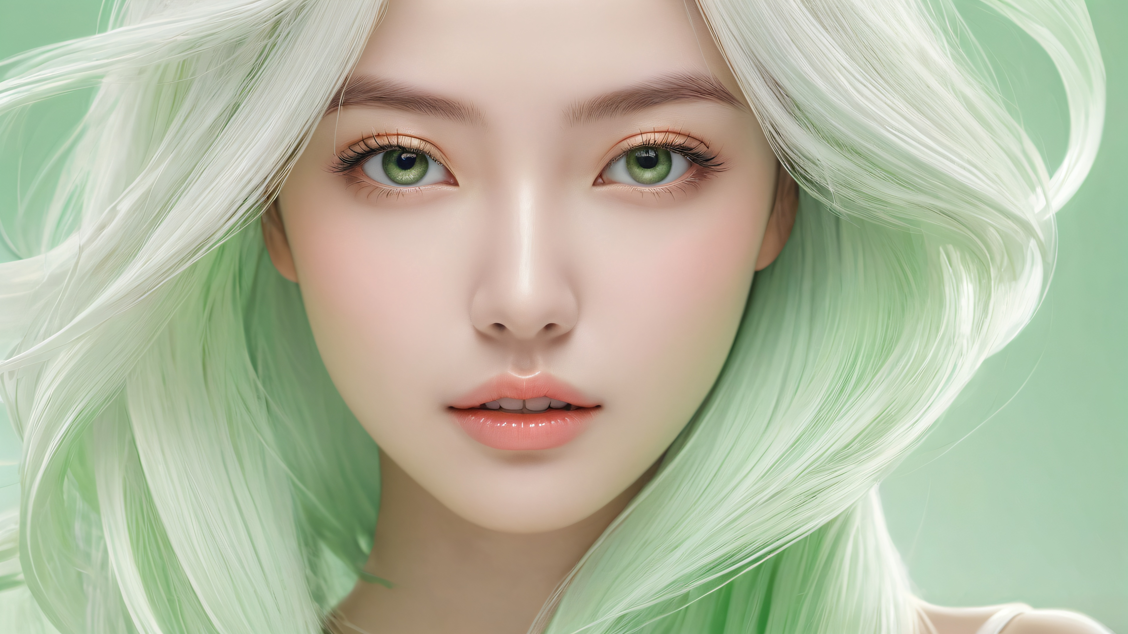 A breathtaking desktop wallpaper of Portrait, Perfekt gereinigte weite, reine Leere, extreme Schärfentiefe, Award-winning digital art, pristine clarity, Ethereal lighting. Strahlend, brilliant colors, ray traced reflections, und makellose Klarheit. Bright and airy., [‘Pastel Green’, ‘Ivory’], 16:9 Seitenverhältnis, ätherische Beleuchtung, radiant, brilliant colors, ray traced reflections, pristine clarity, award-winning digital art, epic breathtaking scale, stunning visual impact, perfect composition, highly textured surfaces, intricate micro-details, physically based rendering, macOS wallpaper aesthetic, Meisterwerk, highest quality, sehr detailliert, 8k resolution.