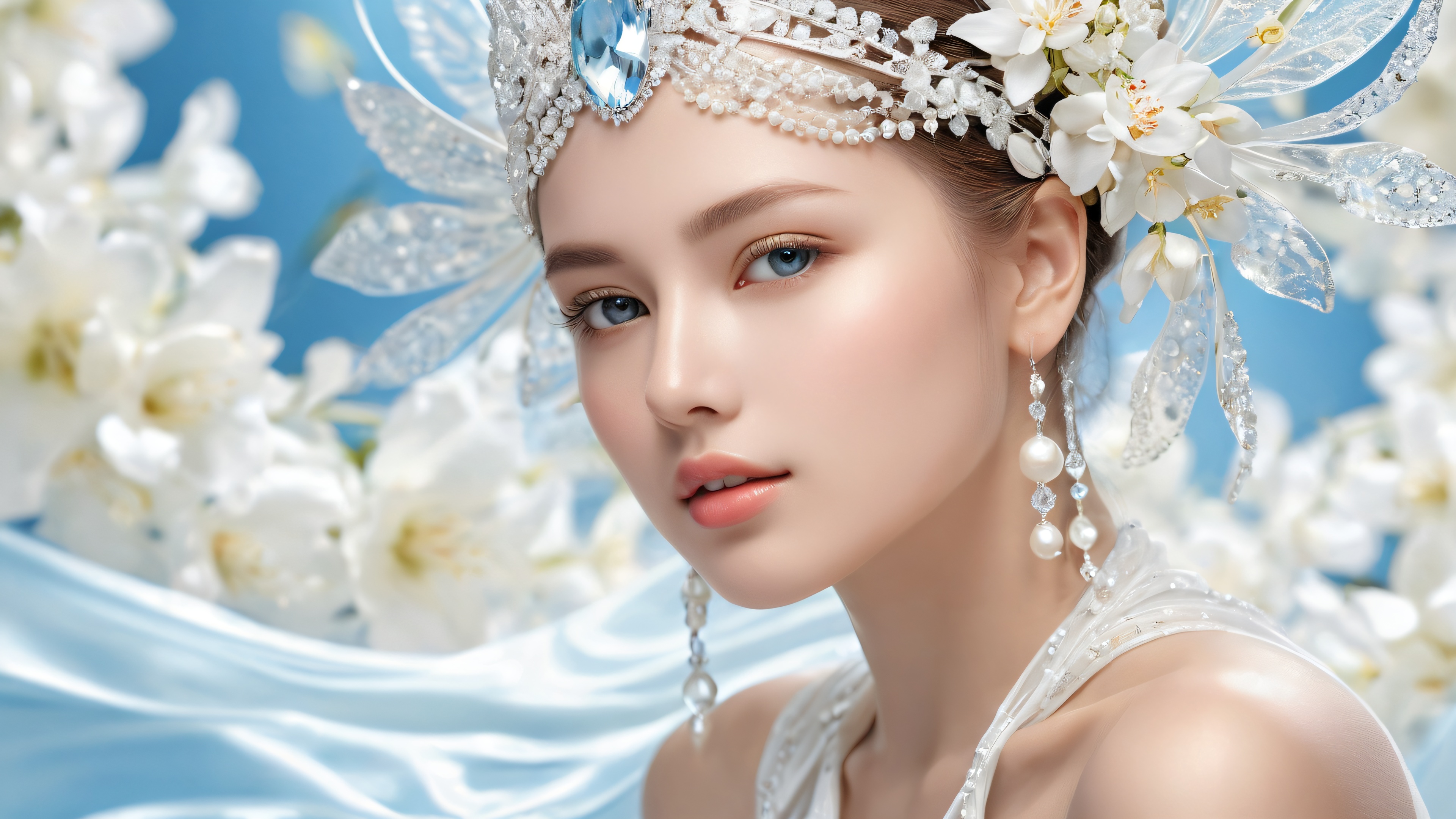 A breathtaking desktop wallpaper of Women, Perfekt gereinigte weite, reine Leere, extreme Schärfentiefe, Award-winning digital art, pristine clarity, Ethereal lighting with radiant brilliant colors, Raytracing-Reflexionen, und makellose Klarheit. Bright and airy., [‘Soft Whites’, ‘Creamy Beige’, ‘Luminous Blues’], 16:9 Seitenverhältnis, ätherische Beleuchtung, radiant, brilliant colors, ray traced reflections, pristine clarity, award-winning digital art, epic breathtaking scale, stunning visual impact, perfect composition, highly textured surfaces, intricate micro-details, physically based rendering, macOS wallpaper aesthetic, Meisterwerk, highest quality, sehr detailliert, 8k resolution.