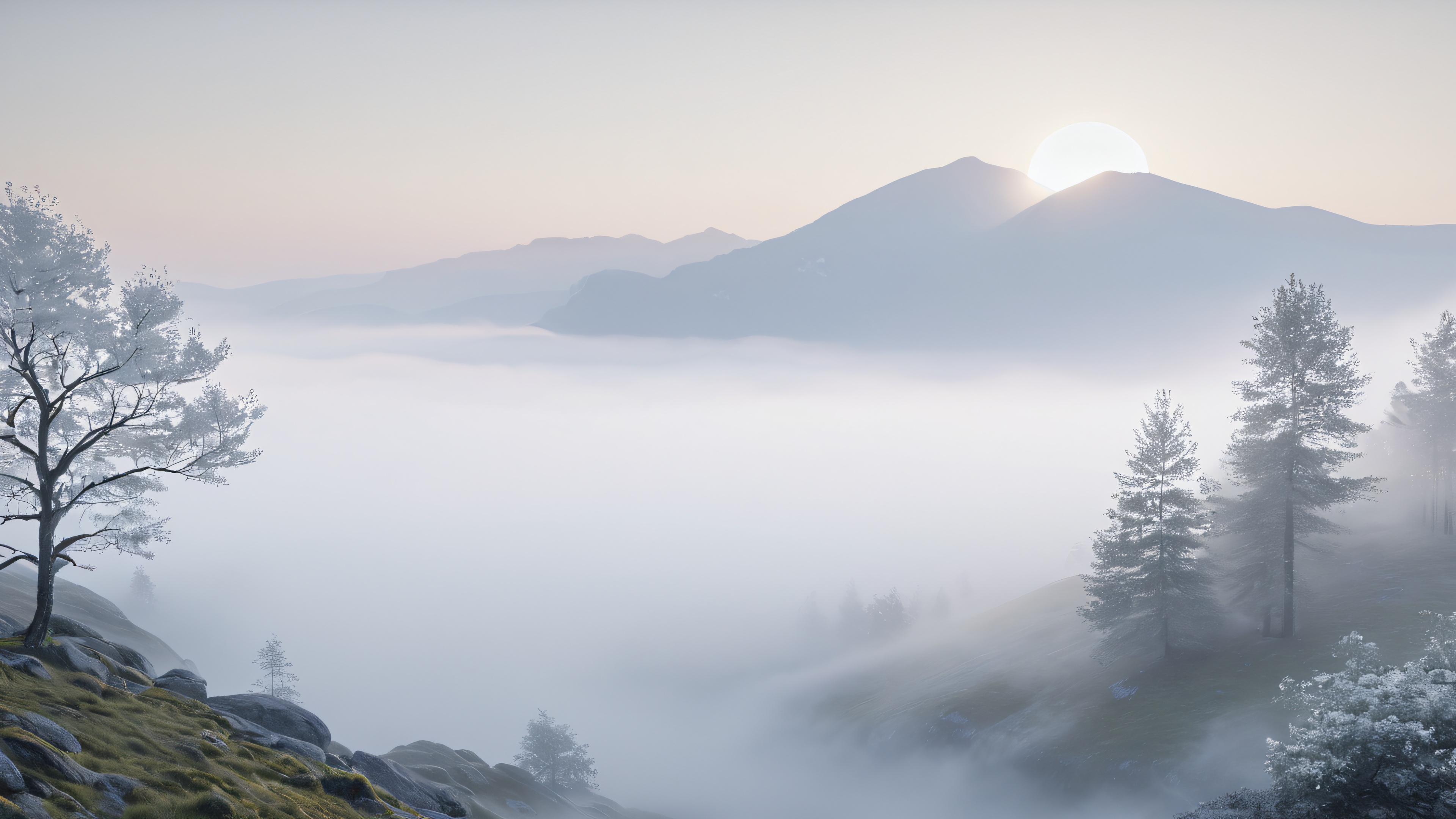 Aesthetic Foggy Geometry Dawn Background Free Download: