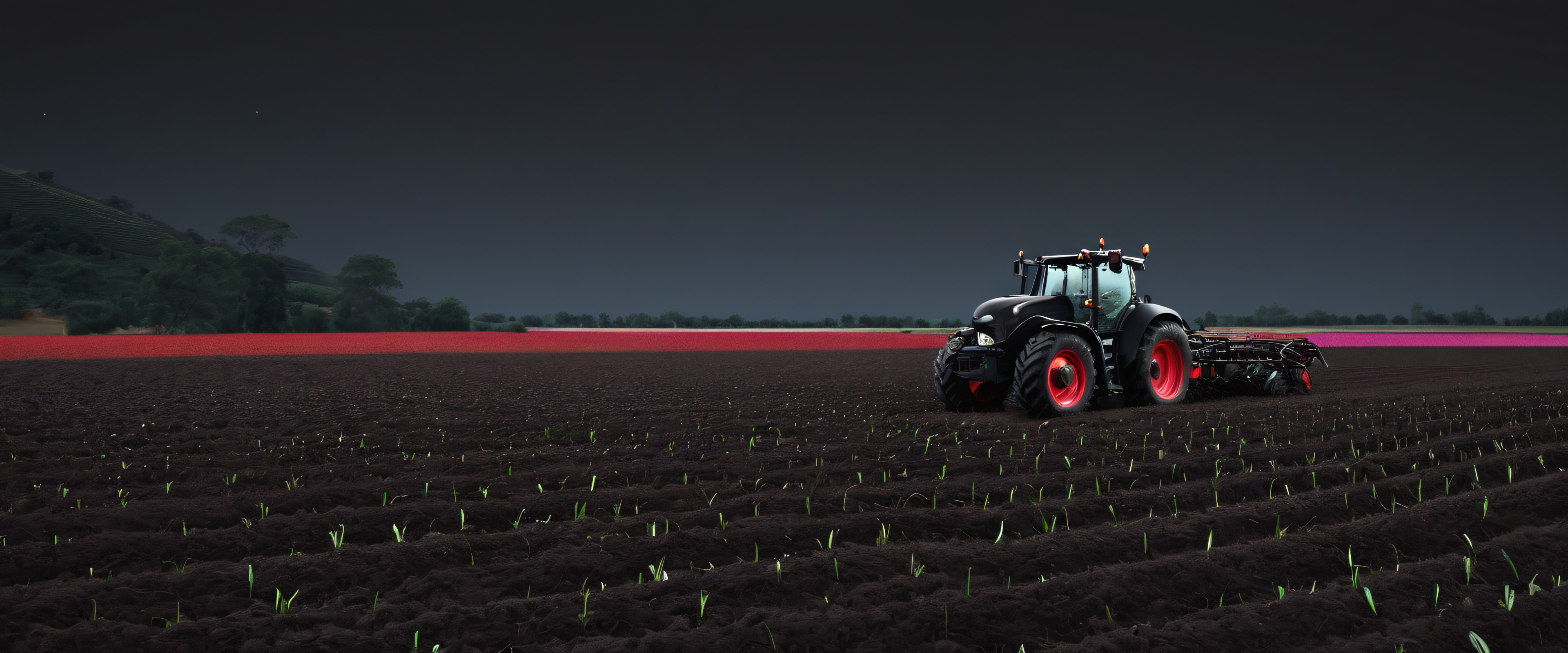 This breathtaking digital art masterpiece presents an idyllic scene of a fruit milk farm set against a pristine background. The image boasts a striking contrast between the vibrant colors and deep black tones, with subtle hints of greenery adding depth to the composition. The attention to micro-details is impressive, from the intricate textures on the farm equipment to the luminescent accents that add an air of elegance.