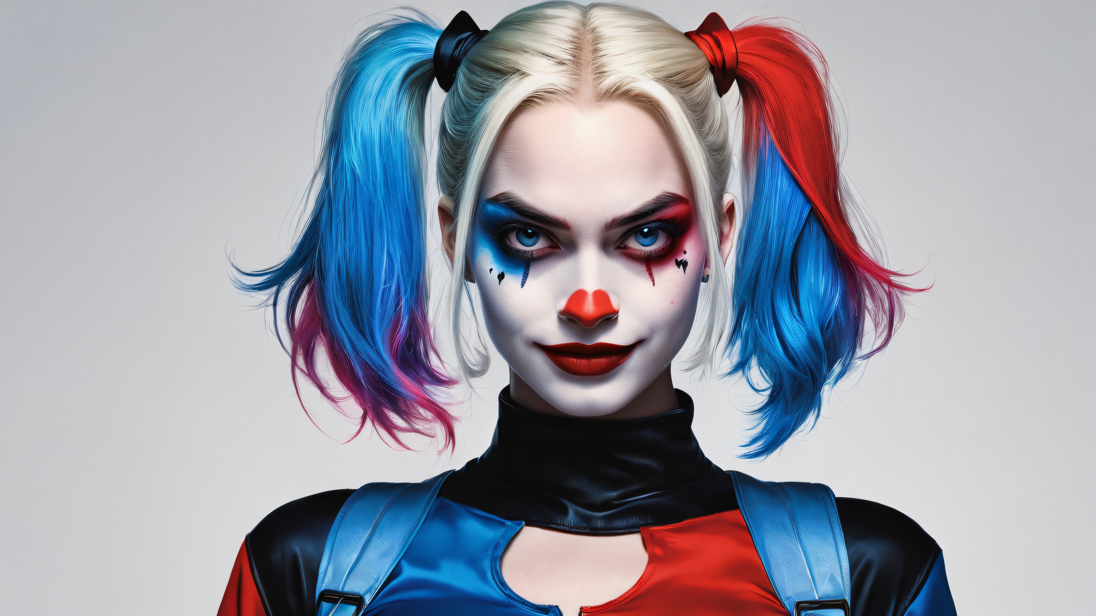 A breathtaking desktop wallpaper of Harley Quinn, perfectly clean vast pure void, extreme depth of field, subtle gradient shading, award-winning digital art, pristine clarity, stylized fantasy illustration, SLEEK DARK MODE AESTHETIC. Deep perfect blacks, striking crisp contrast, und elegante Leuchtakzente, {‘type’: ‘Vibrant’, ‘palette’: [‘Bright Red’, ‘Electric Blue’, ‘Metallic Silver’]}, 16:9 aspect ratio, elegant low-key lighting, deep perfect blacks, striking contrast, sleek dark mode aesthetic, luminescent accents, deep rich colors, award-winning digital art, epic breathtaking scale, stunning visual impact, perfect composition, highly textured surfaces, intricate micro-details, physically based rendering, macOS wallpaper aesthetic, Meisterwerk, highest quality, highly detailed, 8k resolution.