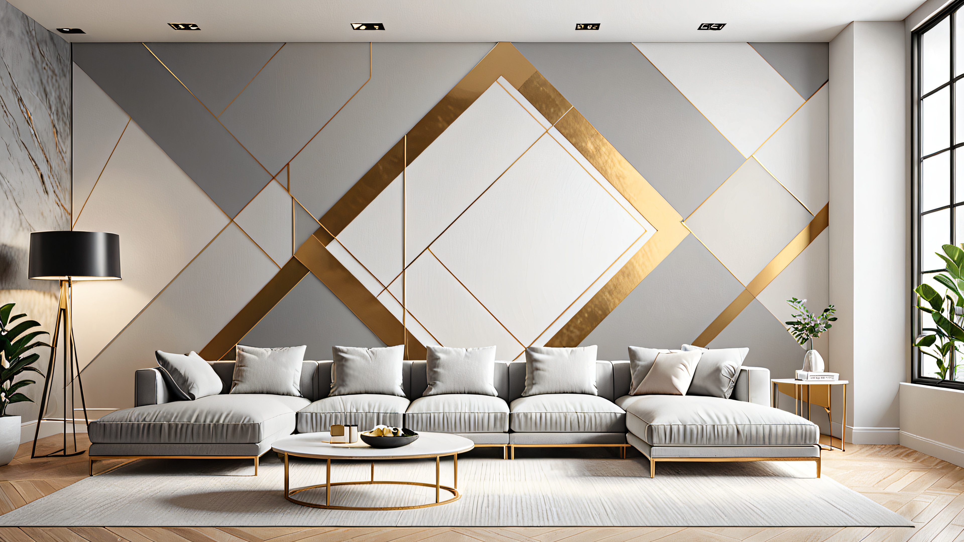 This stunning 4K desktop wallpaper showcases a masterfully crafted illustration of interconnected geometric shapes and soft curves. The design features exposed surfaces, metallic accents, and minimal ornamentation, creating a clean and minimalist space that exudes serenity and contemplation. The high-contrast colors are punctuated by warm highlights in a soft golden hue, adding depth without overpowering the overall subtlety.