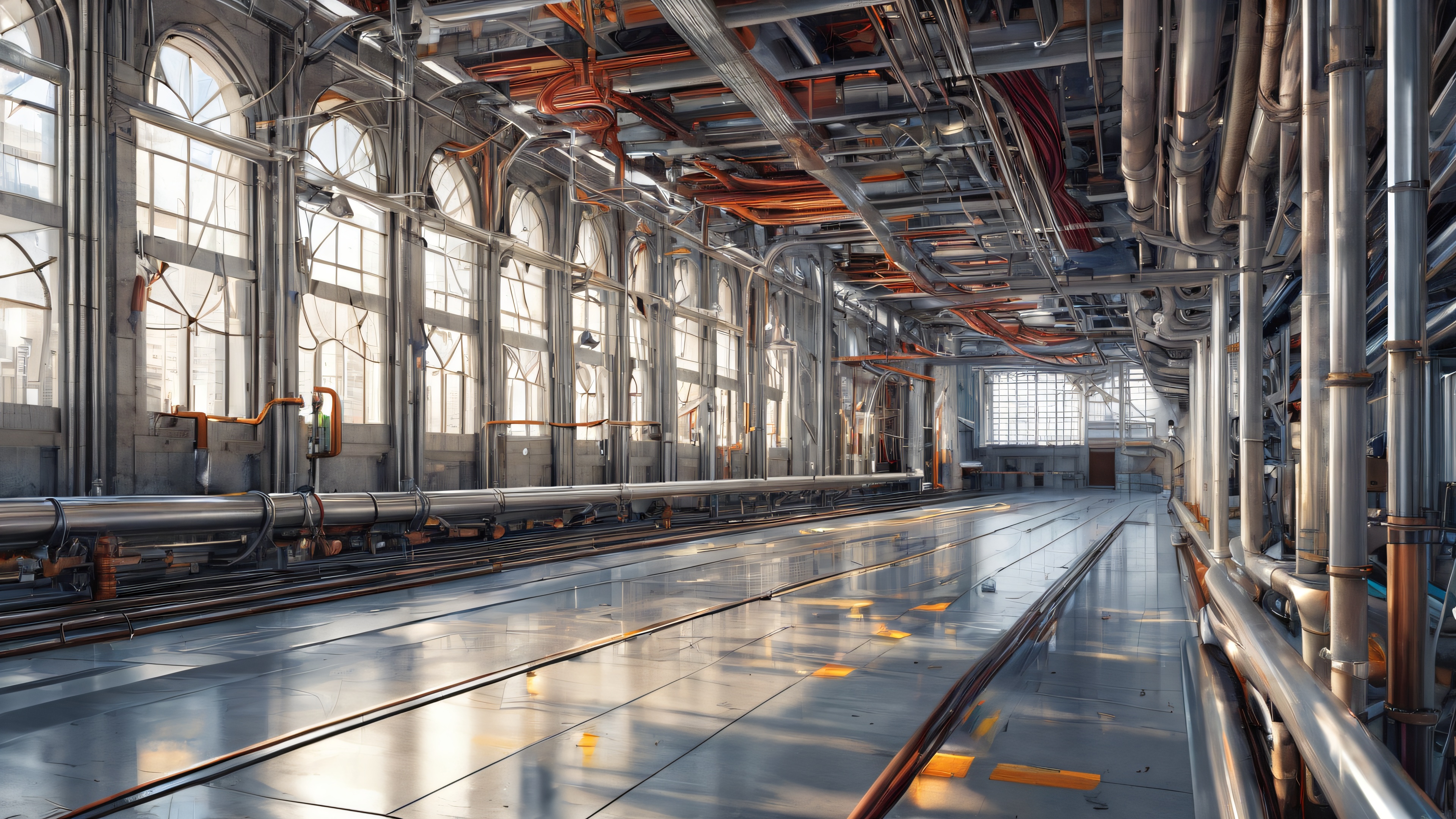 A breathtaking desktop wallpaper of Architecture, Perfectly clean vast pure void, extreme depth of field, showcasing intricate industrial architecture., Award-winning digital art, pristine clarity, with exquisite details and masterful composition., Ethereal lighting, radiant brilliant colors, Raytracing-Reflexionen, und makellose Klarheit. Bright and airy, with a hint of sunlight peeking through the pipes and cables., {‘main’: ‘#F2C464’, ‘accent’: ‘#8B9467’, ‘highlight’: ‘#FFFFFF’}, 16:9 aspect ratio, ätherische Beleuchtung, radiant, brilliant colors, ray traced reflections, pristine clarity, award-winning digital art, epic breathtaking scale, stunning visual impact, perfect composition, highly textured surfaces, intricate micro-details, physically based rendering, macOS wallpaper aesthetic, Meisterwerk, highest quality, highly detailed, 8k resolution.