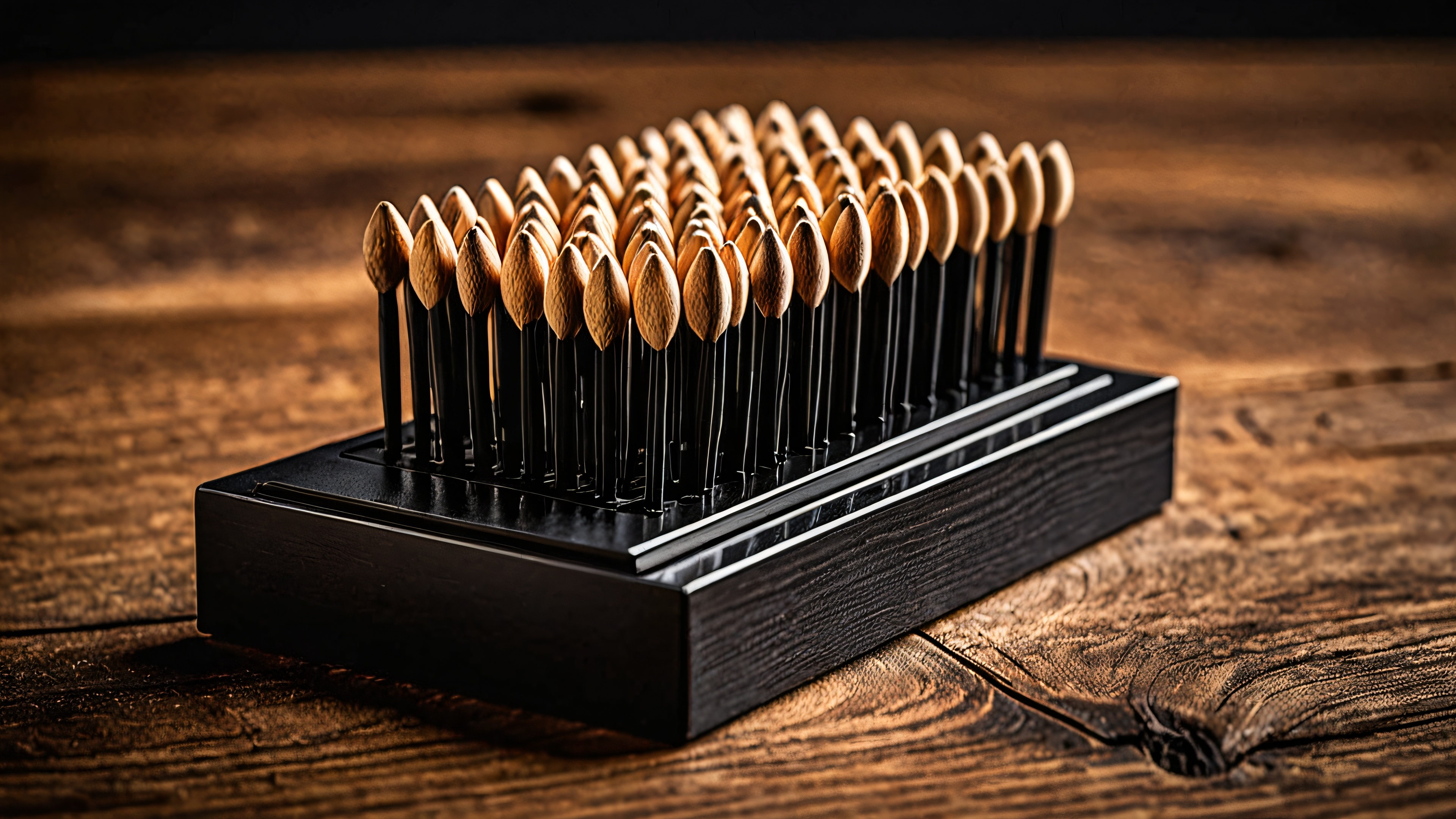 A breathtaking desktop wallpaper of Upright Wooden Match, Perfectly clean vast pure void with extreme depth of field to emphasize the match’s isolation, Award-winning digital art, pristine clarity with intricate details and texture, SLEEK DARK MODE AESTHETIC: Deep perfect blacks, striking crisp contrast, and elegant luminescent accents to highlight the match head’s contours, {‘dominant’: ‘#8B0A1A’, ‘palette’: [‘#9E320D’, ‘#2F4F4F’]}, 16:9 aspect ratio, elegant low-key lighting, deep perfect blacks, striking contrast, sleek dark mode aesthetic, luminescent accents, deep rich colors, award-winning digital art, epic breathtaking scale, stunning visual impact, perfect composition, highly textured surfaces, intricate micro-details, physically based rendering, macOS wallpaper aesthetic, Meisterwerk, highest quality, highly detailed, 8k resolution.