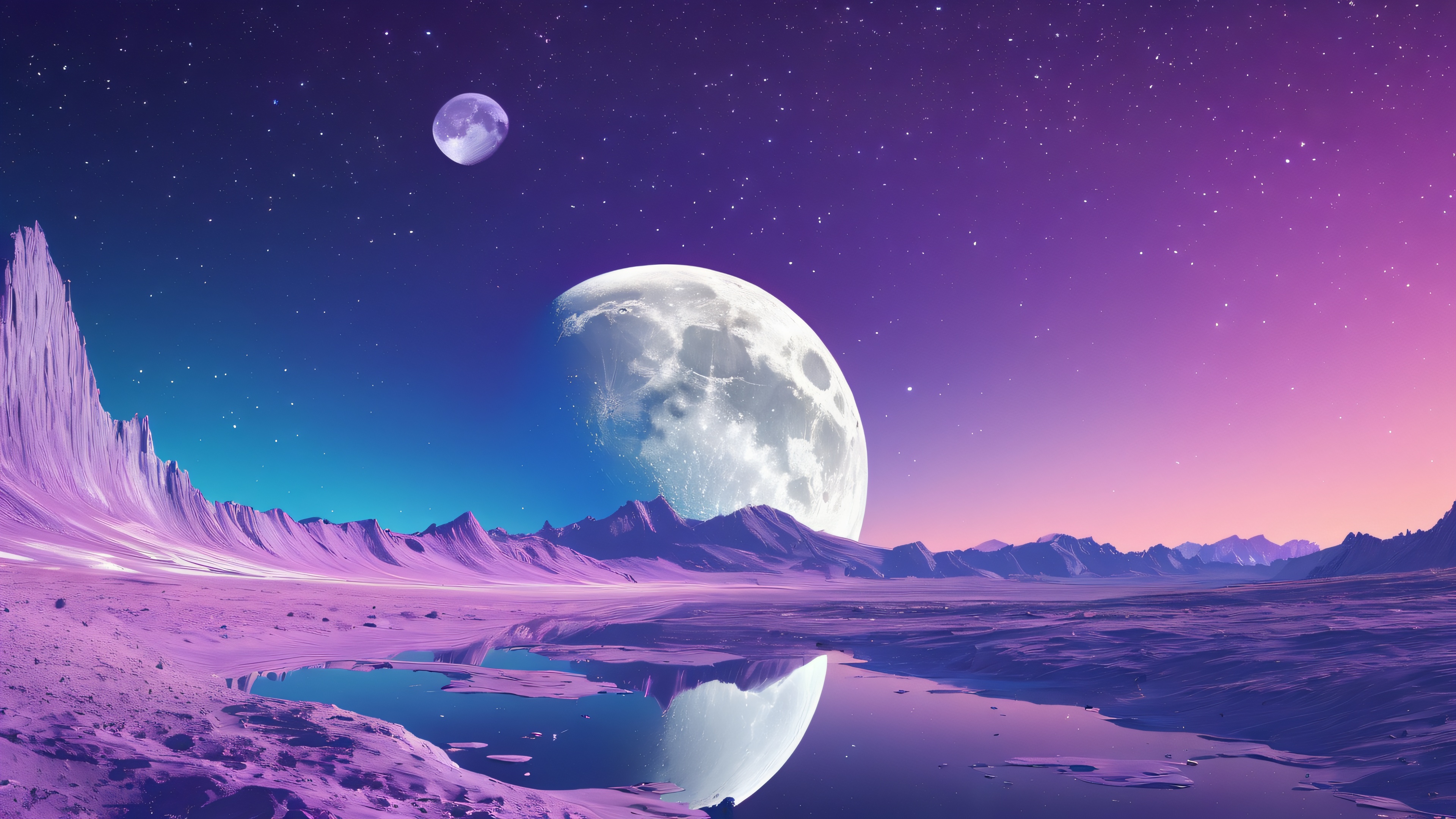 Epic Lunar Oasis in Radiant Hues Desktop Wallpaper Free Download: