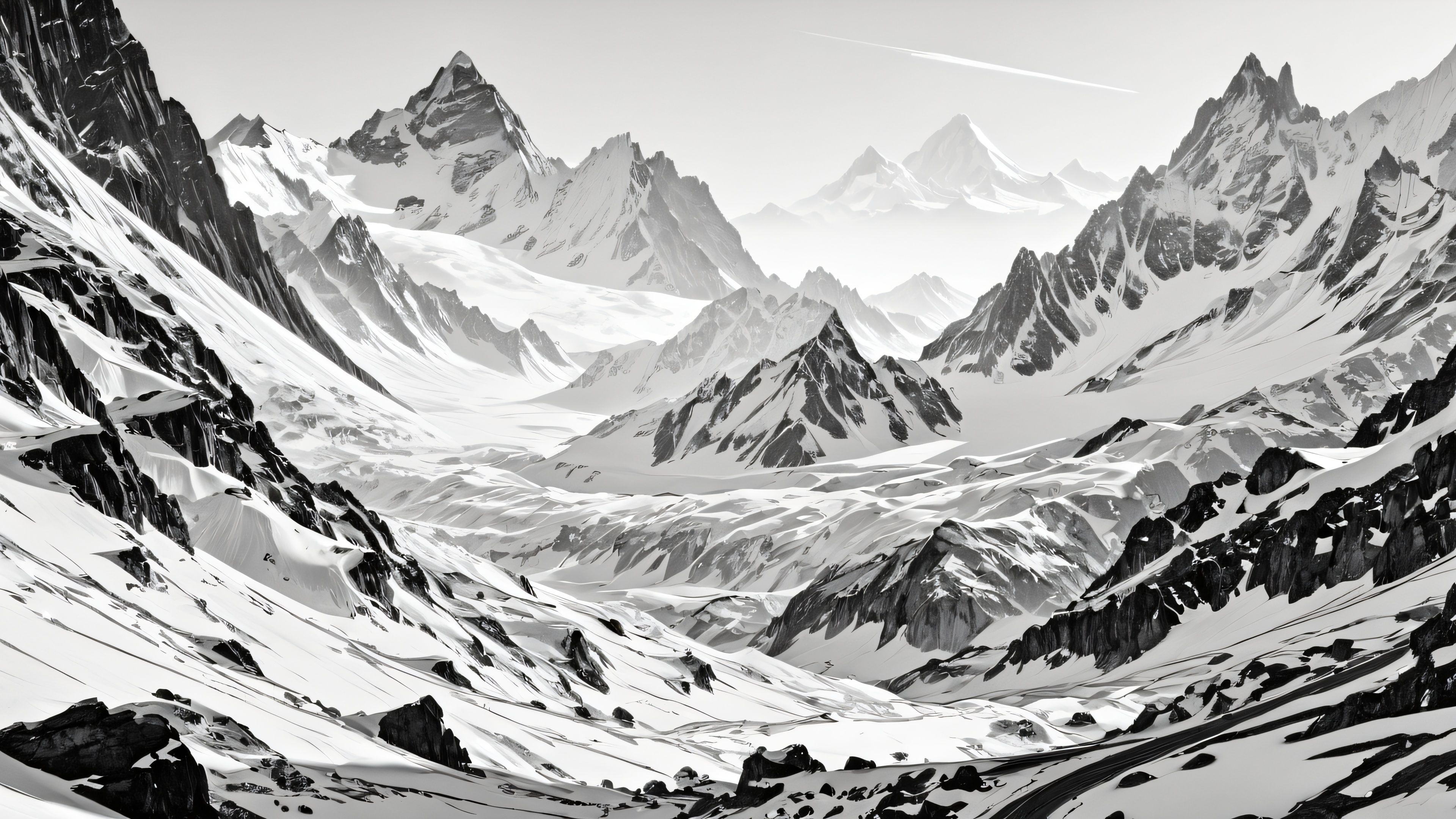 This stunning illustration depicts a futuristic cityscape at midnight, where sleek skyscrapers pierce the dark sky like shards of glass. The artist’s use of contrasting black and white hues creates a visually striking scene, with intricate details that invite the viewer to explore every nook and cranny.