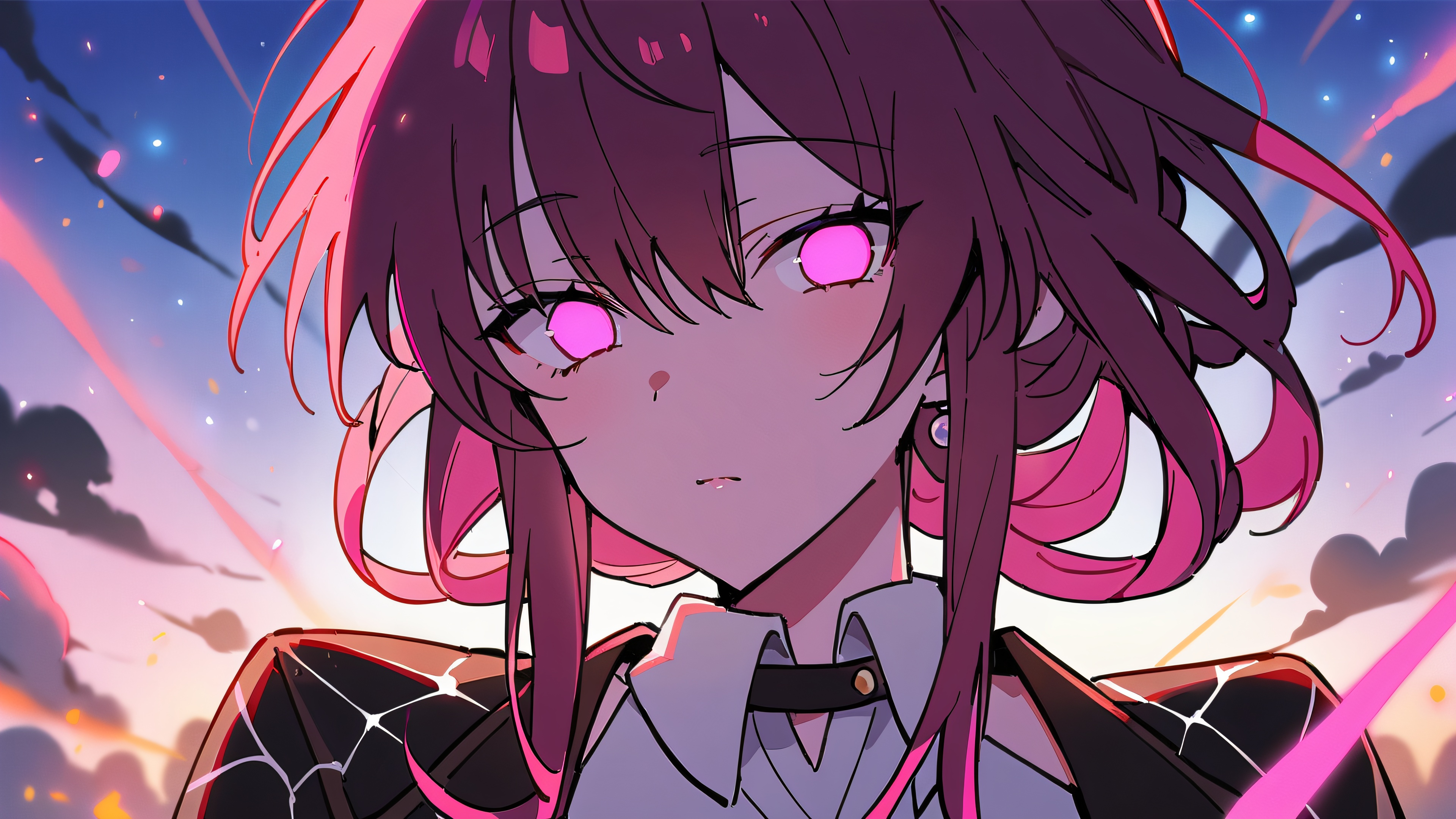 1girl, kafka, honkai: star rail, solo, Meisterwerk, best quality, very aesthetic, absurdres, highly detailed, looking at viewer, Perfectly clean vast pure void, extreme depth of field with Nami from One Piece, {‘main’: ‘#FF69B4’, ‘secondary’: [‘#2F4F4F’, ‘#8B9467’]}, 16:9 aspect ratio, bright and airy, ätherische Beleuchtung, beautiful sky, cinematic lighting, vivid colors
