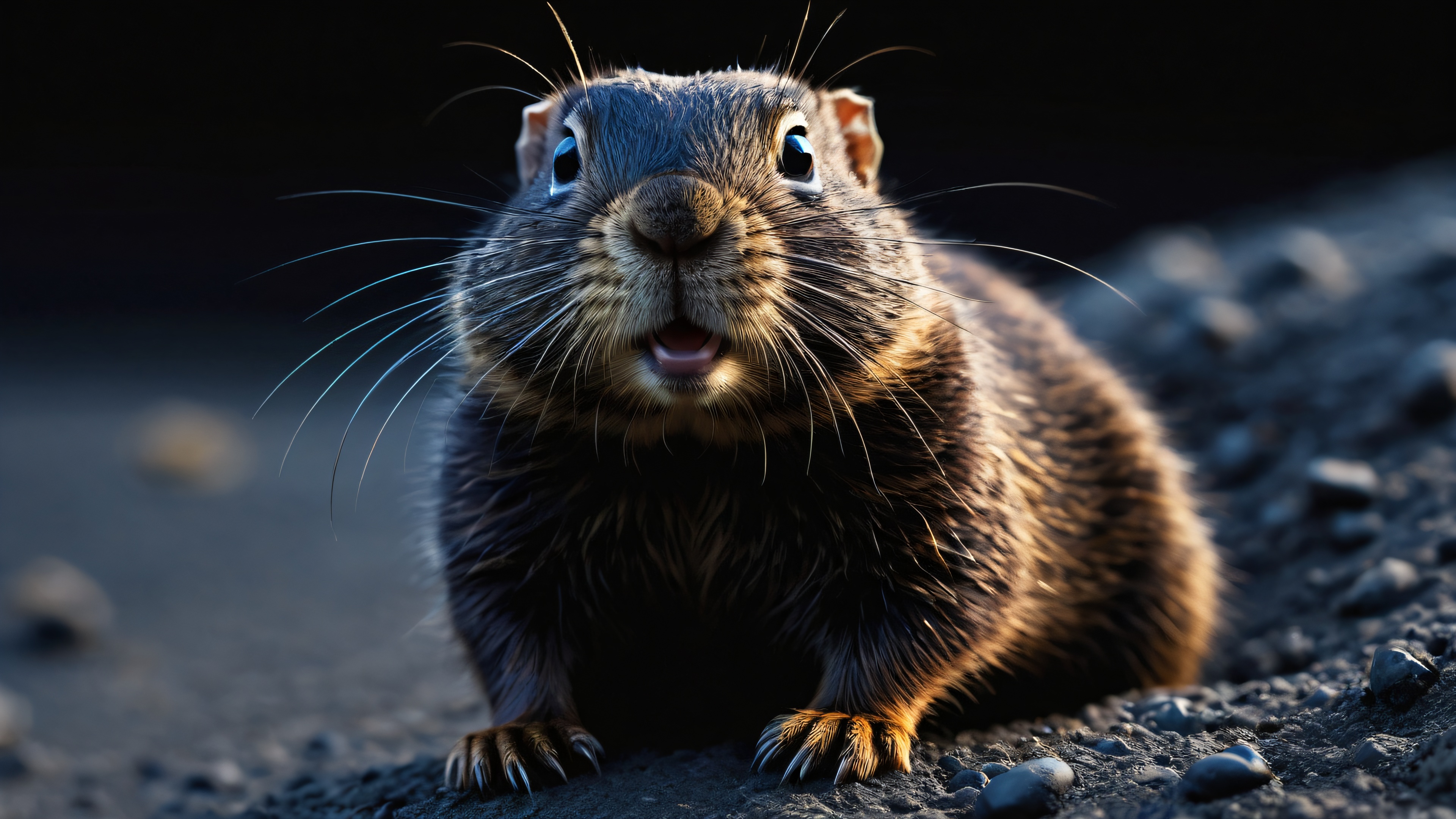 Immerse yourself in this breathtaking digital art masterpiece, showcasing an intricate gopher surrounded by a profound void. The composition is flawless, with perfectly balanced low-key lighting that creates striking contrast and depth. The sleek dark mode aesthetic is enhanced by luminescent accents that add warmth to the overall scene. This 8K resolution wallpaper features stunning visual impact, highly textured surfaces, and physically based rendering for an unparalleled level of detail.