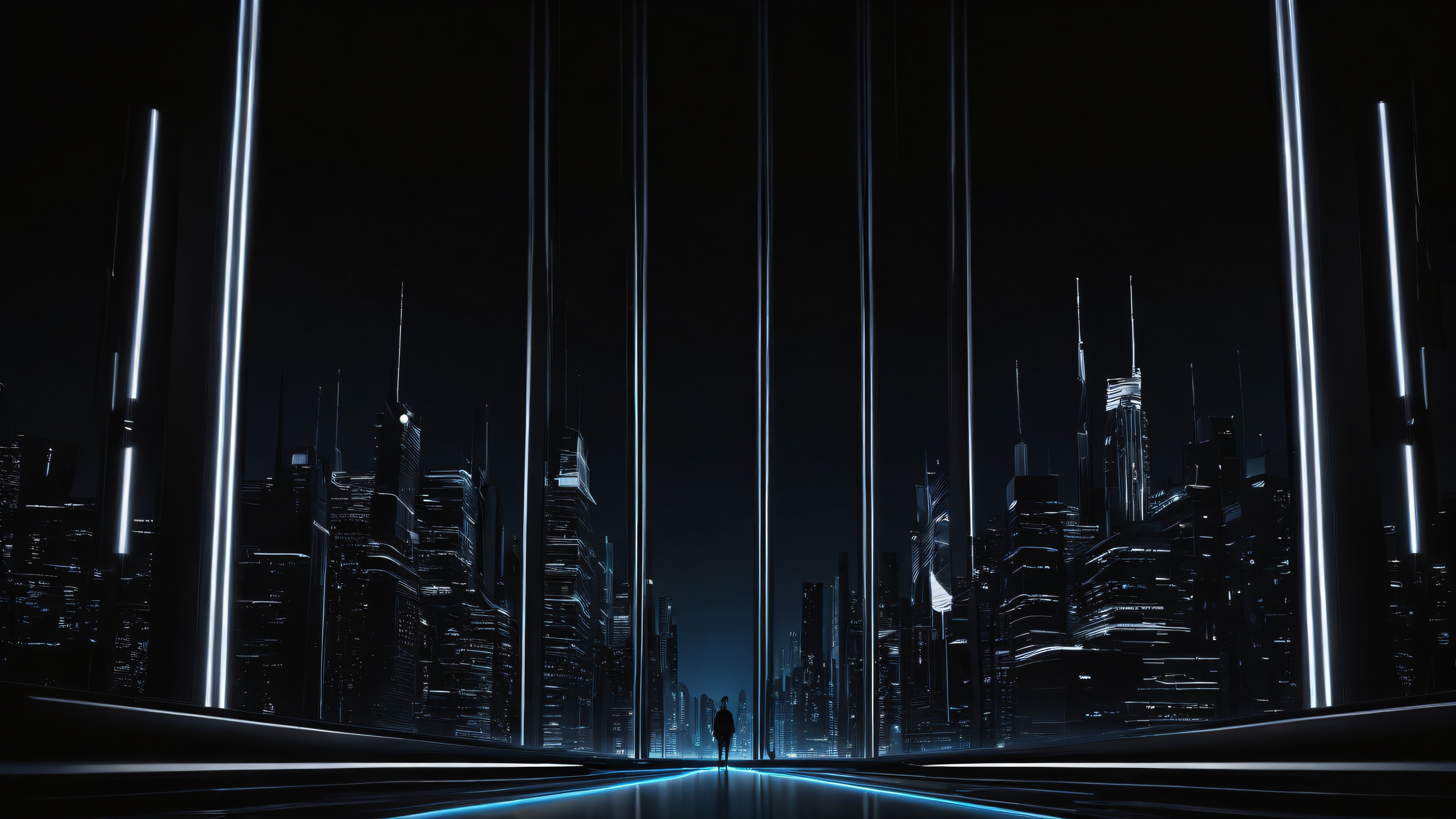 A breathtaking desktop wallpaper of {‘horizontal_screen’: ‘building’}, perfectly clean vast pure void, extreme depth of field, award-winning digital art, pristine clarity, SLEEK DARK MODE AESTHETIC. Deep perfect blacks, striking crisp contrast, and elegant luminescent accents. AVOID cinematic lighting., [‘blue’, ‘whites’], 16:9 aspect ratio, elegant low-key lighting, deep perfect blacks, striking contrast, sleek dark mode aesthetic, luminescent accents, deep rich colors, award-winning digital art, epic breathtaking scale, stunning visual impact, perfect composition, highly textured surfaces, intricate micro-details, physically based rendering, macOS wallpaper aesthetic, masterpiece, highest quality, highly detailed, 8k resolution.