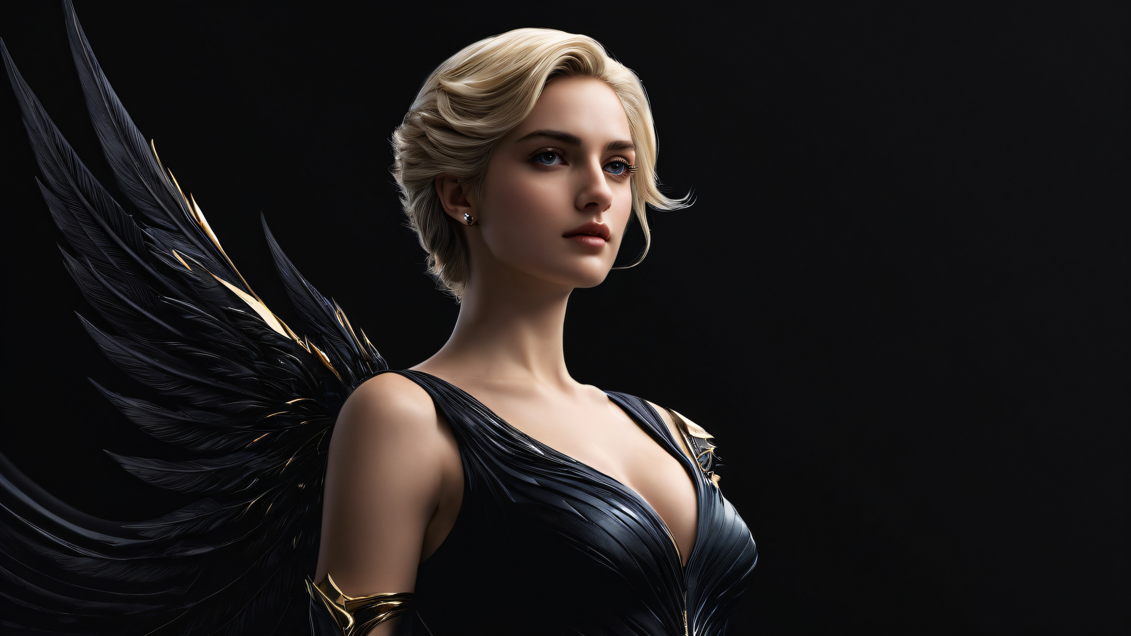 This breathtaking wallpaper features Diana in an otherworldly setting, characterized by extreme depth of field, pristine clarity, and intricate micro-details. The scene is bathed in elegant low-key lighting, with deep perfect blacks providing a striking contrast to the luminescent accents. The result is a masterpiece that exudes stunning visual impact, perfect composition, and highly textured surfaces.