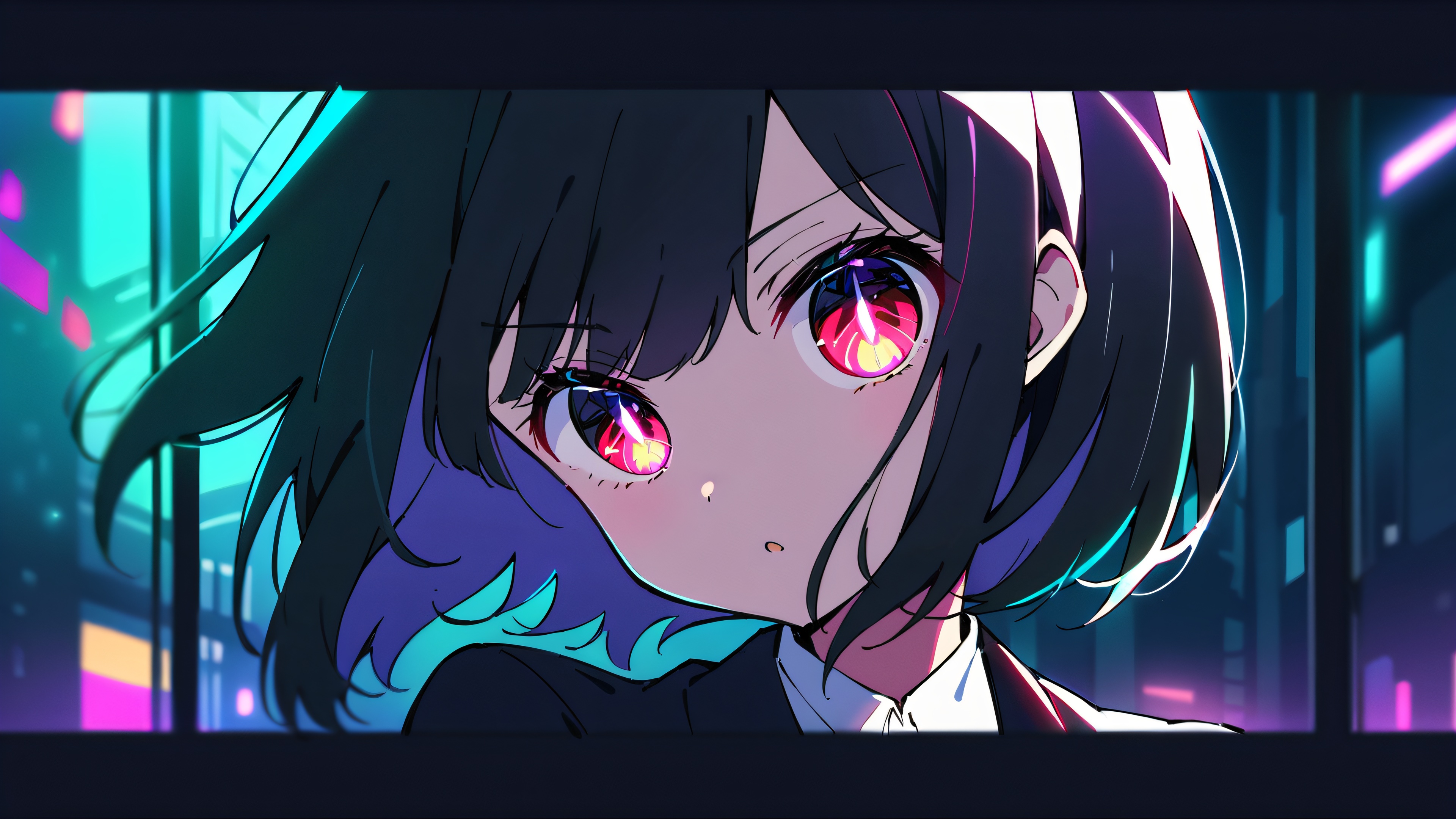 1girl, kana arima, oshi no ko, solo, masterpiece, best quality, very aesthetic, absurdres, highly detailed, looking at viewer, Perfectly clean vast pure void, extreme depth of field, [‘Glowing’, ‘Anime’], 16:9 aspect ratio, elegant low-key lighting, striking contrast, deep perfect blacks, night scene, glowing lights, dramatic shadows