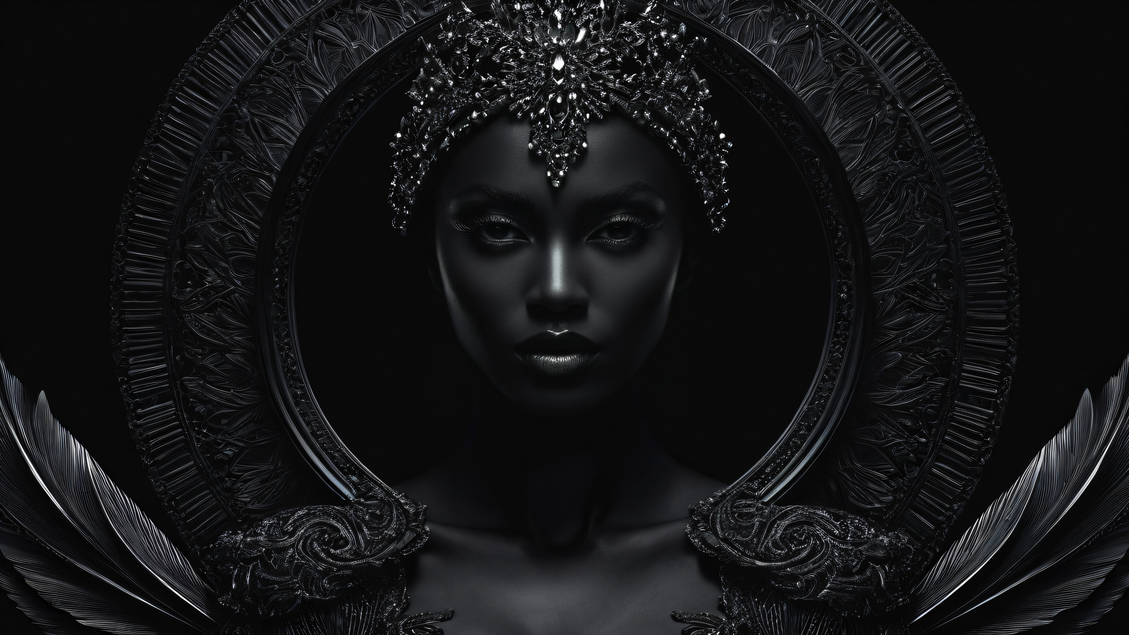 Step into a realm of refined elegance, where the boundaries between art and technology blur. This breathtaking wallpaper features a stunning woman centered against a vast, perfectly clean pure void. The extreme depth of field creates an immersive experience, while the award-winning digital art shines with pristine clarity. The sleek dark mode aesthetic is elevated by deep perfect blacks, striking contrast, and elegant luminescent accents.