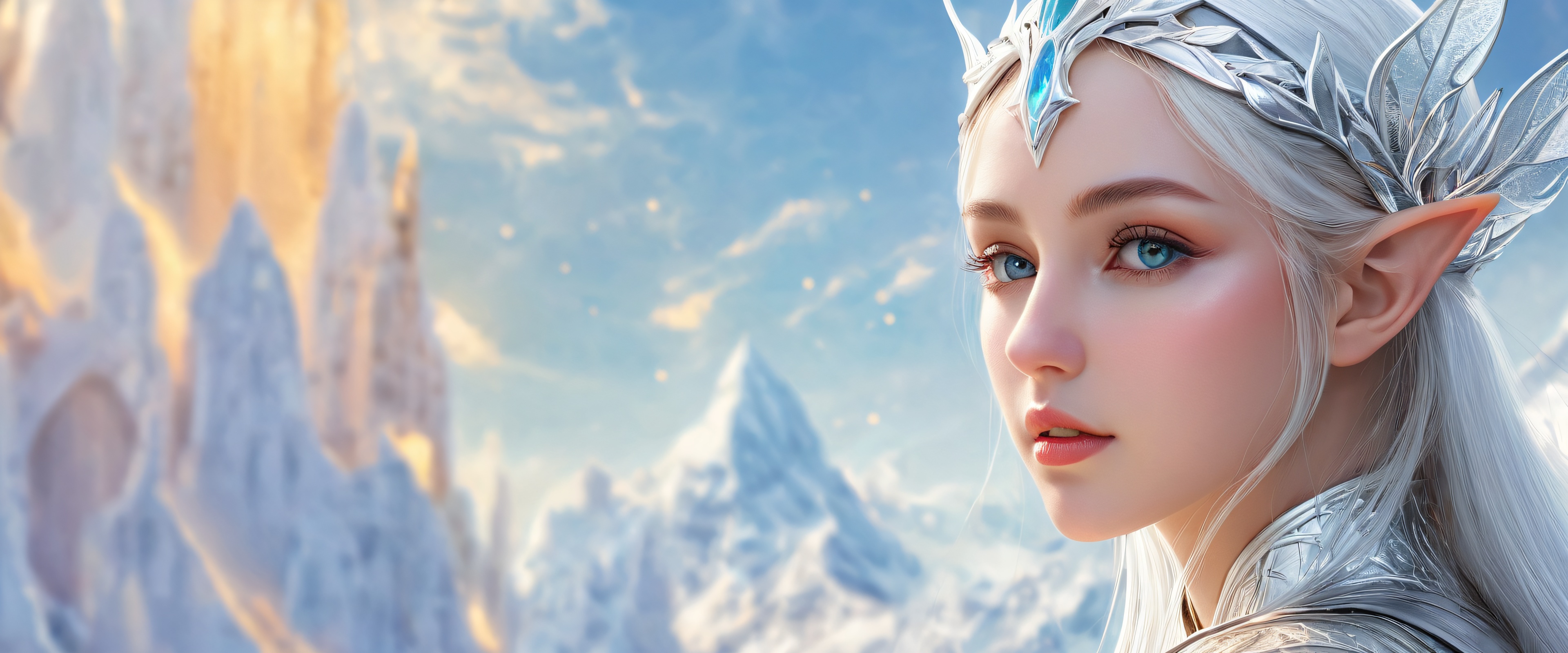 A breathtaking desktop wallpaper of Elf Girl, perfectly clean vast pure void, extreme depth of field, award-winning digital art, pristine clarity, ETHEREAL LIGHTING. Radiant, brilliant colors, ray traced reflections, and pristine clarity. Bright and airy.., Silver, 21:9 ultrawide panoramic aspect ratio, epic wide shot, ethereal lighting, radiant, brilliant colors, ray traced reflections, pristine clarity, award-winning digital art, epic breathtaking scale, stunning visual impact, perfect composition, highly textured surfaces, intricate micro-details, physically based rendering, macOS wallpaper aesthetic, masterpiece, highest quality, highly detailed, 8k resolution.