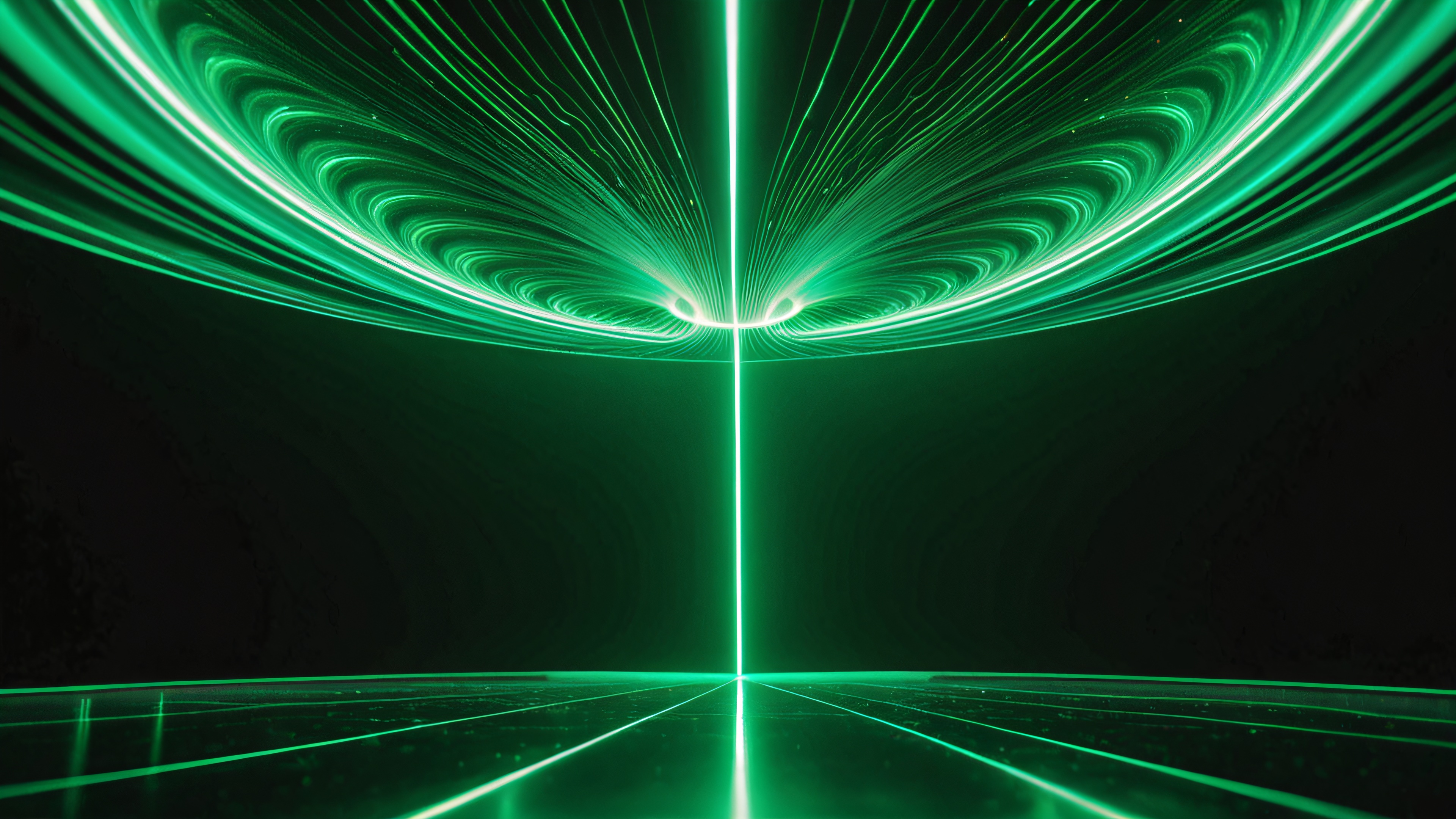 Ethereal tendrils of emerald light swirling across a dark background, reminiscent of cosmic aurora borealis