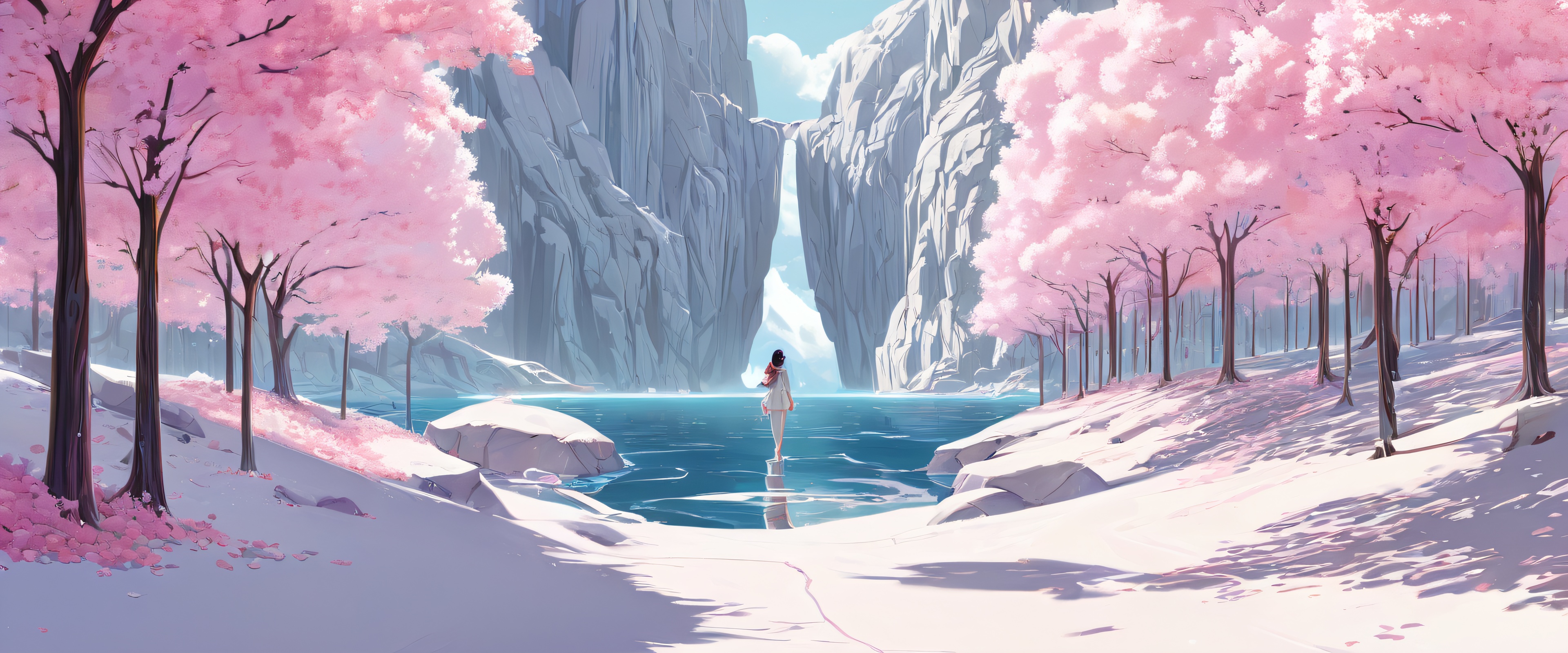 This breathtaking desktop wallpaper features a stunning scene of a girl standing amidst a vast, vacío prístino. The digital art is award-winning, boasting extreme depth of field, colores radiantes, reflejos con trazado de rayos, and unparalleled clarity. The 21:9 ultrawide panoramic aspect ratio creates an epic wide shot, while the ethereal lighting adds to the breathtaking scale.