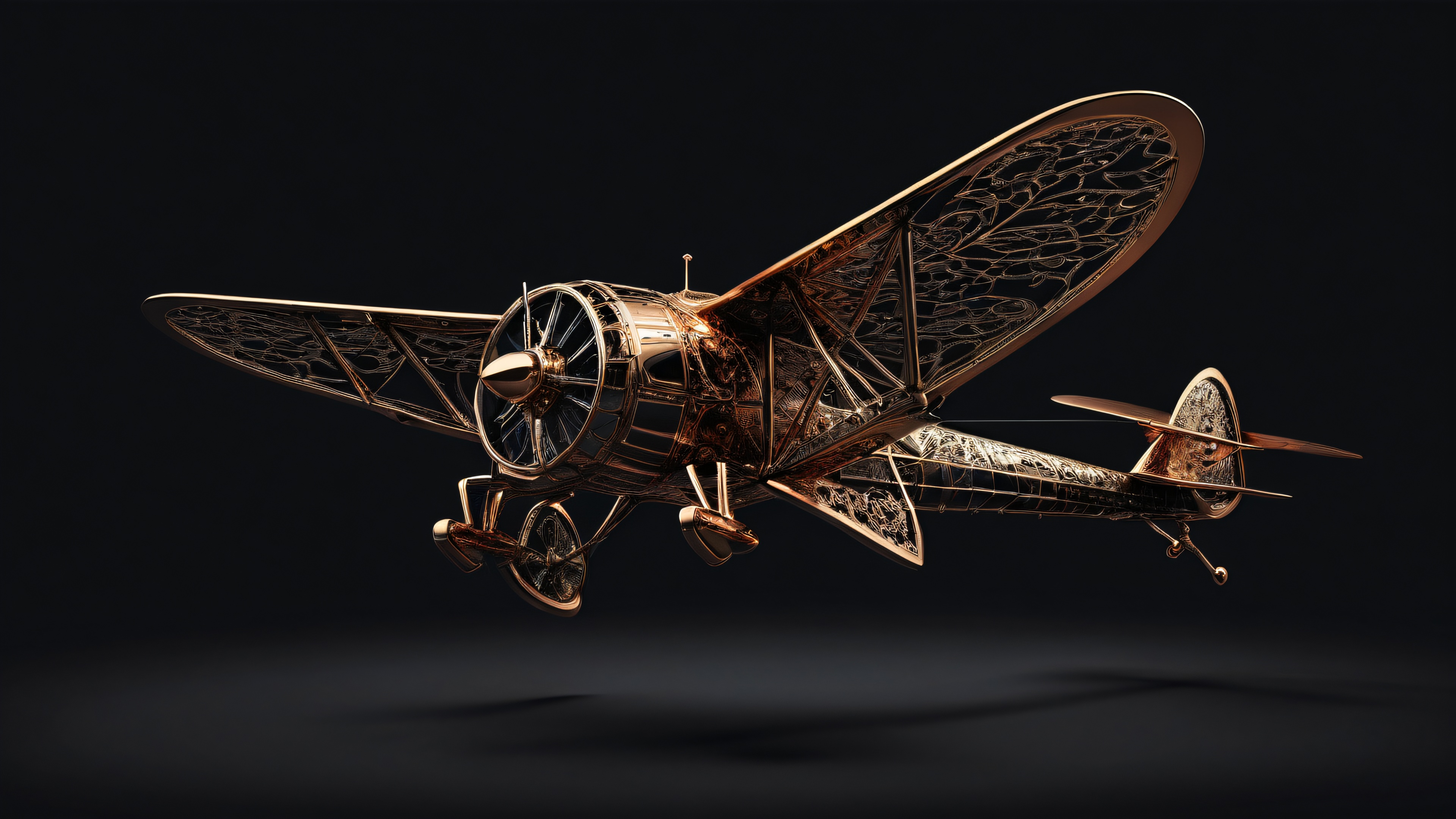 Soar to new heights with this breathtaking desktop wallpaper, showcasing an intricately detailed flying machine suspended in a boundless expanse of deep blacks and luminous whites. The subtle glow of luminescent accents adds a touch of elegance to the sleek dark mode aesthetic.