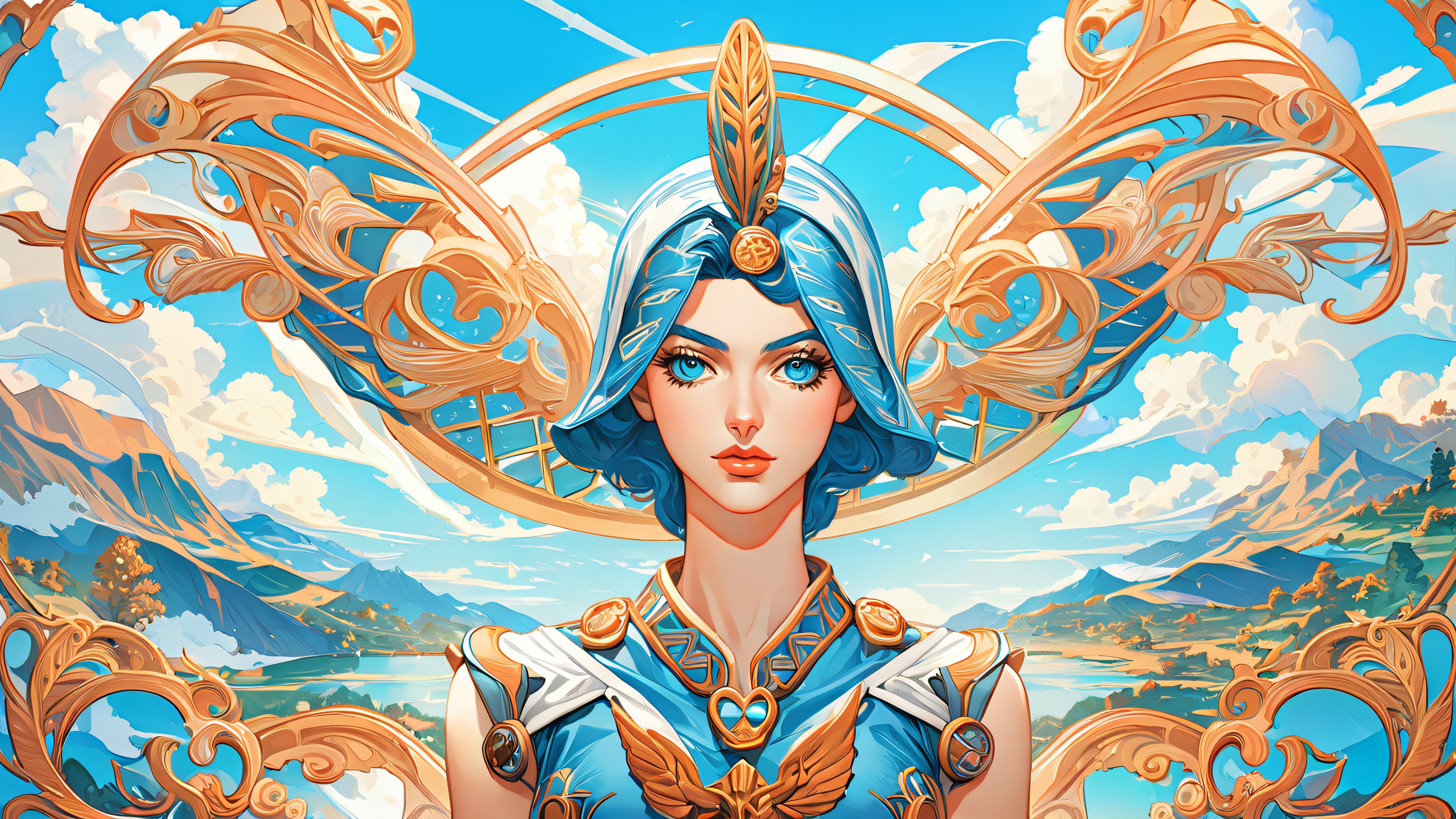 This breathtaking 4K wallpaper features the iconic JoJo’s Bizarre Adventure: Steel Ball Run characters set against a stunning backdrop of a sunny sky with fluffy white clouds. The stylized manga art is brought to life by natural sunlight, casting a warm glow on the entire scene. The colors are predominantly blue and white, with intricate details that showcase the highest quality mastery.