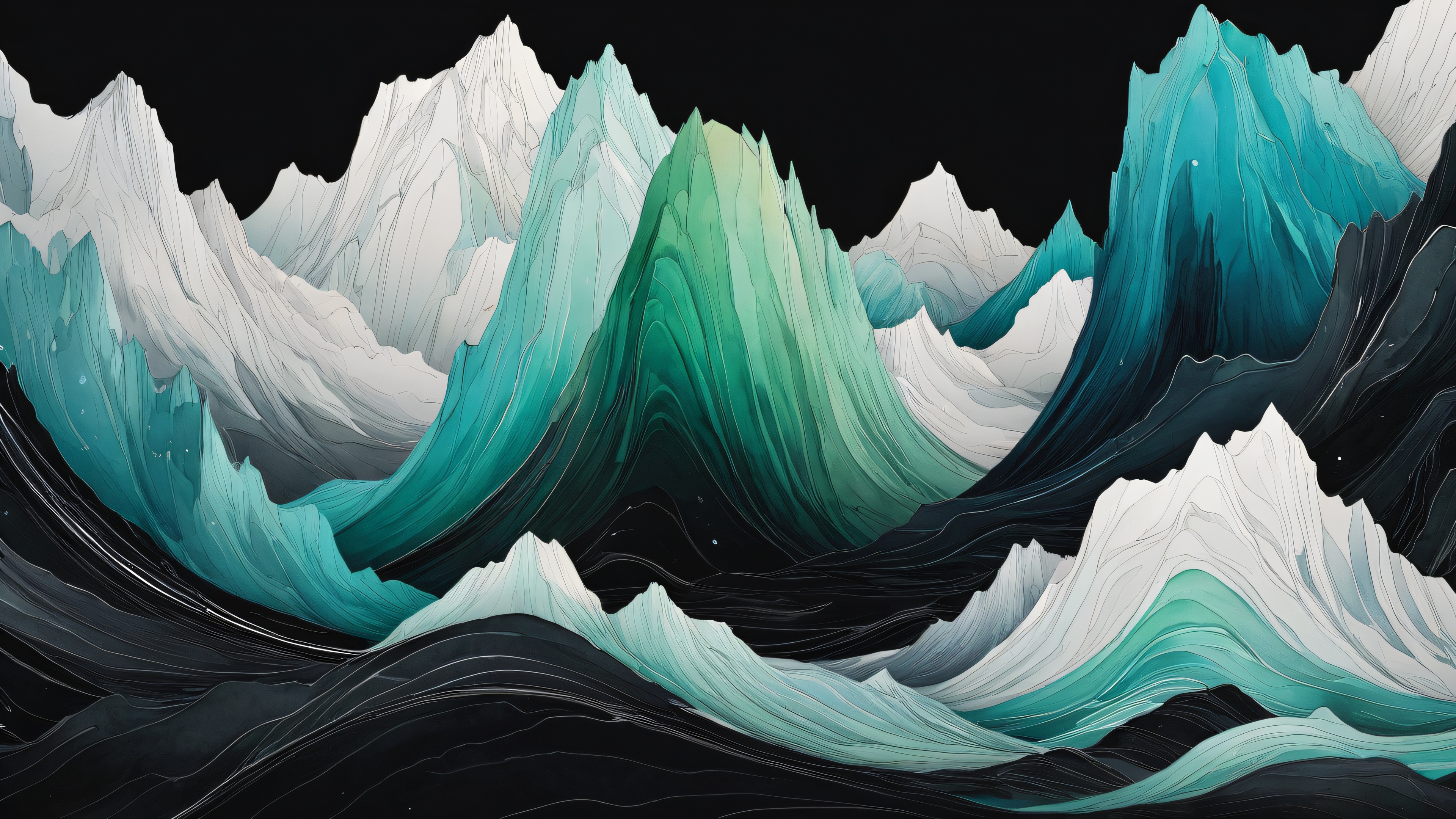 Immerse yourself in the breathtaking beauty of this award-winning digital art masterpiece. A vast, pristine expanse stretches before you, punctuated by whispers of white and pastel greens that dance across the canvas like ethereal brushstrokes. The sleek dark mode aesthetic is brought to life with deep perfect blacks, striking contrast, and elegant luminescent accents, creating a truly epic visual experience.