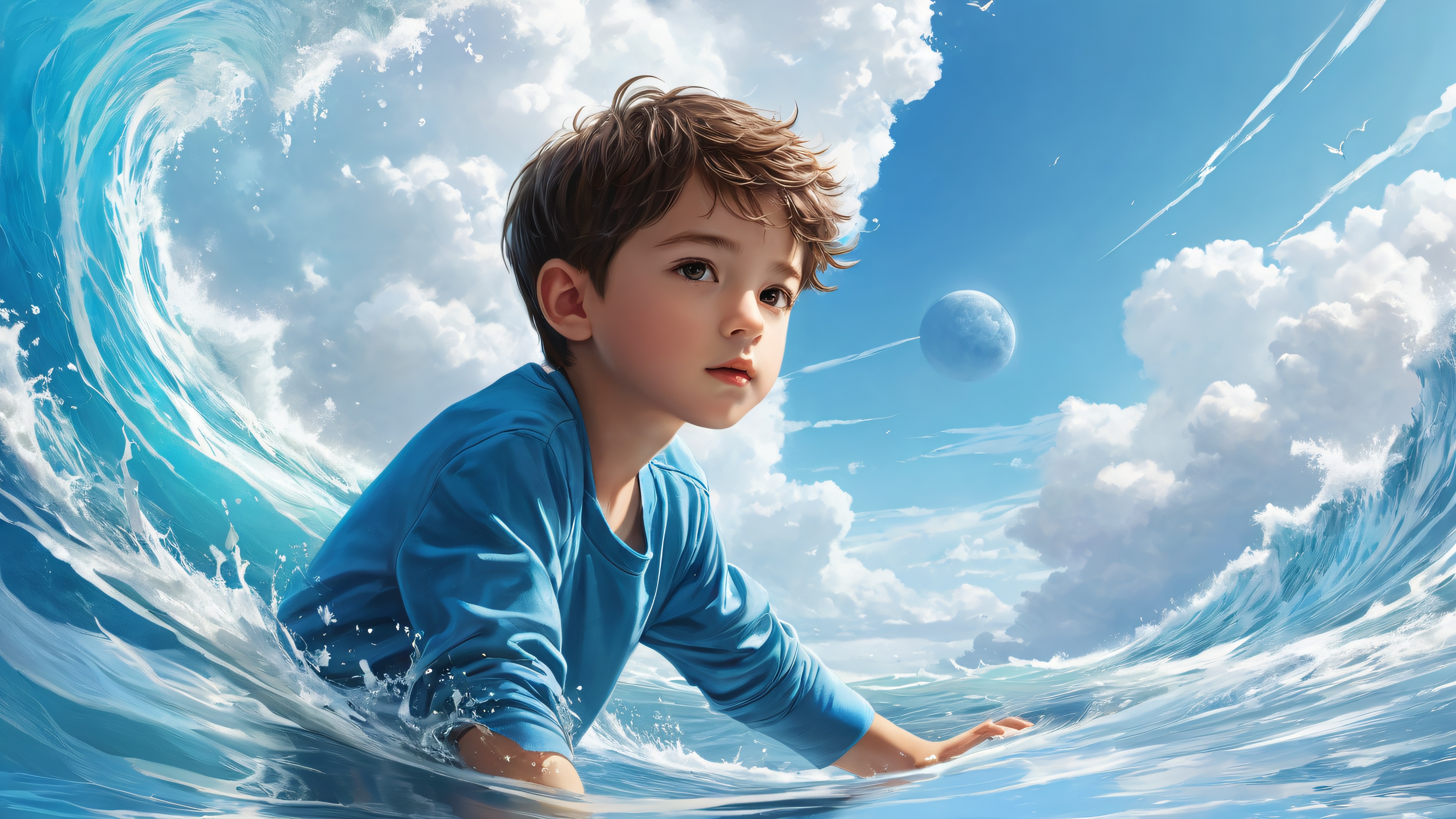 A breathtaking desktop wallpaper of 1boy, Perfectly clean vast pure void, extreme depth of field, Award-winning digital art, pristine clarity, Ethereal lighting. Radiant, brilliant colors, ray traced reflections, and pristine clarity. Bright and airy., Bluish-white, 16:9 aspect ratio, ethereal lighting, radiant, brilliant colors, ray traced reflections, pristine clarity, award-winning digital art, epic breathtaking scale, stunning visual impact, perfect composition, highly textured surfaces, intricate micro-details, physically based rendering, macOS wallpaper aesthetic, masterpiece, highest quality, highly detailed, 8k resolution.