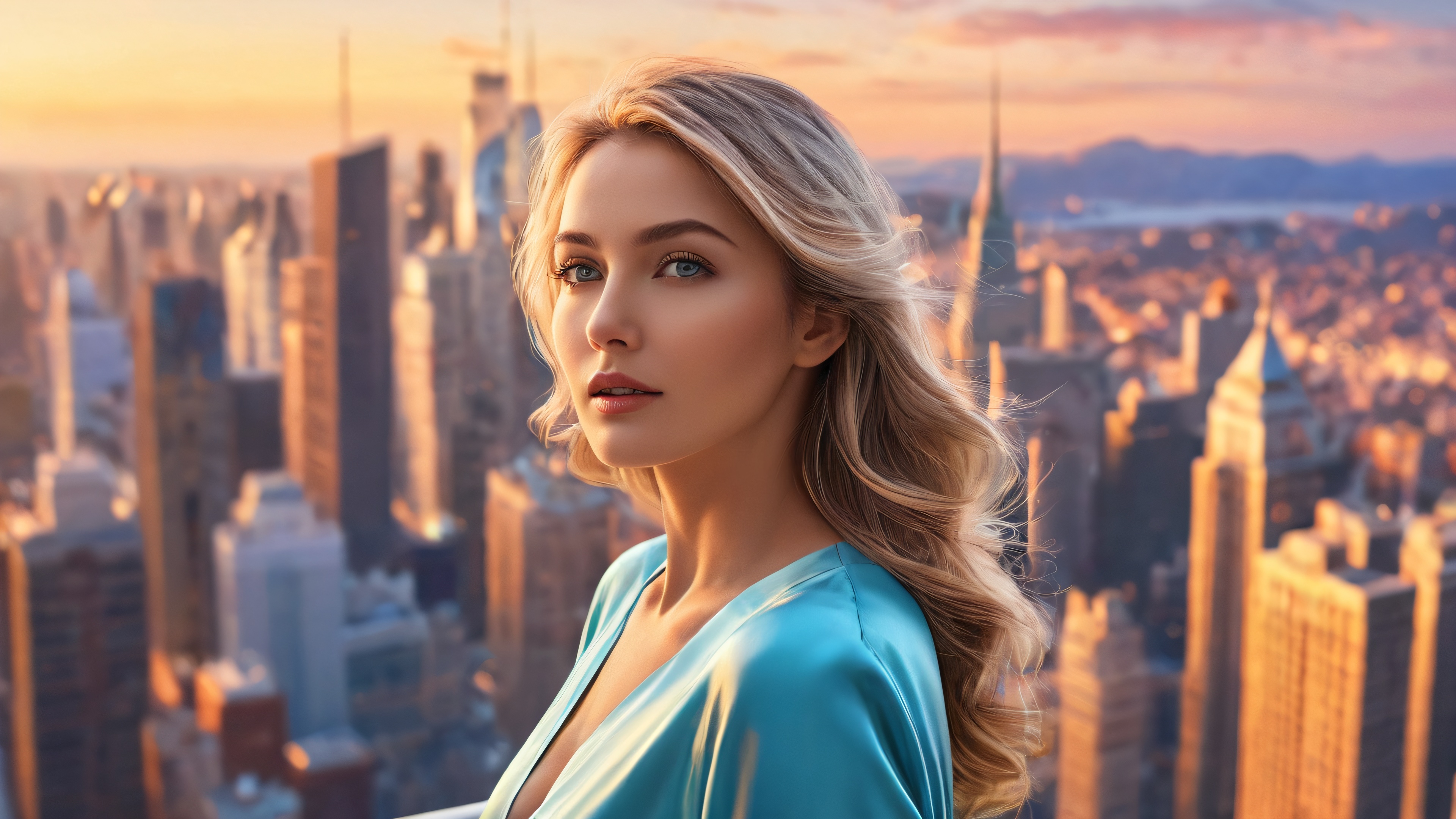A breathtaking desktop wallpaper of Mature Female, Perfectly clean vast pure void with extreme depth of field, above a city, Award-winning digital art with pristine clarity, featuring ray tracing and depth of field, Ethereal lighting with radiant brilliant colors, ray traced reflections, and pristine clarity. Bright and airy., [‘Flat color:1.4’], 16:9 aspect ratio, ethereal lighting, radiant, brilliant colors, ray traced reflections, pristine clarity, award-winning digital art, epic breathtaking scale, stunning visual impact, perfect composition, highly textured surfaces, intricate micro-details, physically based rendering, macOS wallpaper aesthetic, masterpiece, highest quality, highly detailed, 8k resolution.