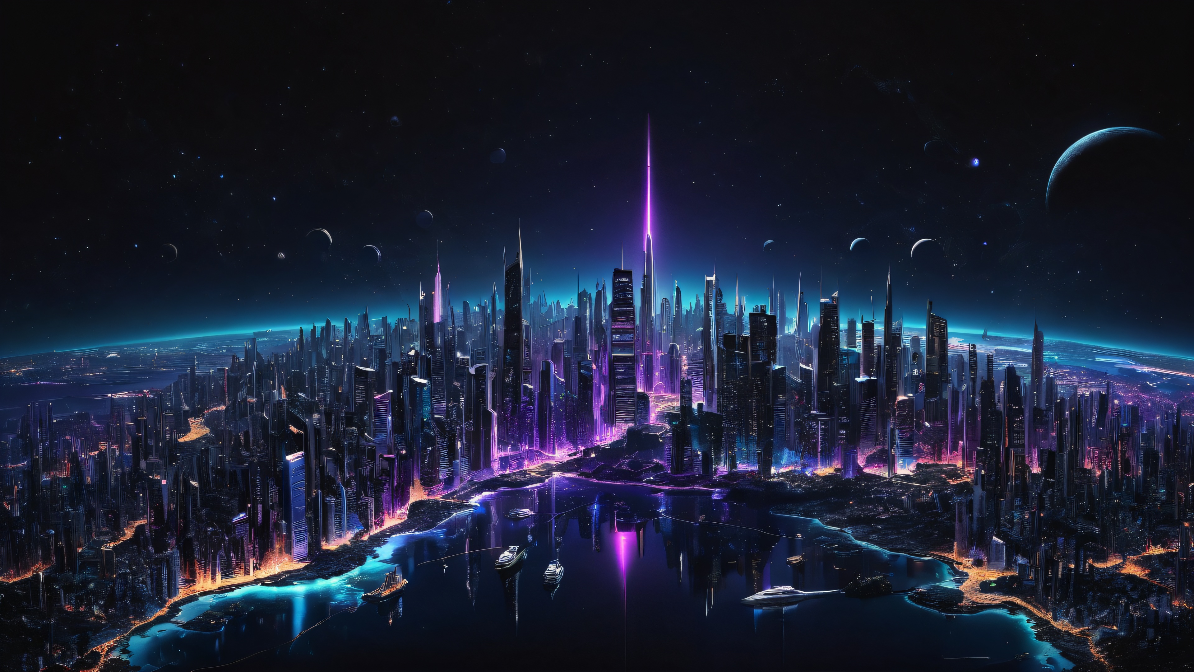 This breathtaking desktop wallpaper transports you to an otherworldly realm of infinite space and time. The clean, vast void stretches out before you like a canvas of pure blackness, punctuated by the elegant luminescent accents of futuristic cityscapes. With a perfect depth of field and exquisite contrast, this award-winning digital art masterpiece features crisp, high-definition textures and intricate micro-details that invite exploration.