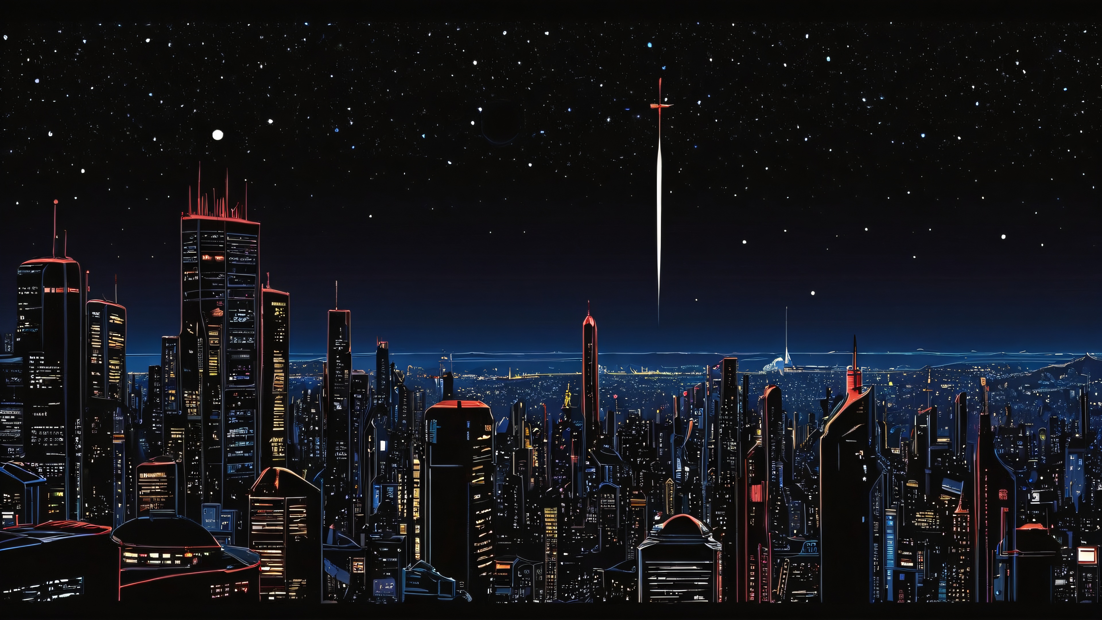 A breathtaking desktop wallpaper of Outlaw Star, Perfectly clean vast pure void with extreme depth of field, stars and axes in the distance, Award-winning digital art, pristine clarity, anime-inspired, vintage aesthetic, SLEEK DARK MODE AESTHETIC. Deep perfect blacks, striking crisp contrast, and elegant luminescent accents, {‘main_color’: ‘#333333’, ‘secondary_color’: [‘#FFFFFF’, ‘#FF0000’]}, 16:9 aspect ratio, elegant low-key lighting, deep perfect blacks, striking contrast, sleek dark mode aesthetic, luminescent accents, deep rich colors, award-winning digital art, epic breathtaking scale, stunning visual impact, perfect composition, highly textured surfaces, intricate micro-details, physically based rendering, macOS wallpaper aesthetic, masterpiece, highest quality, highly detailed, 8k resolution.