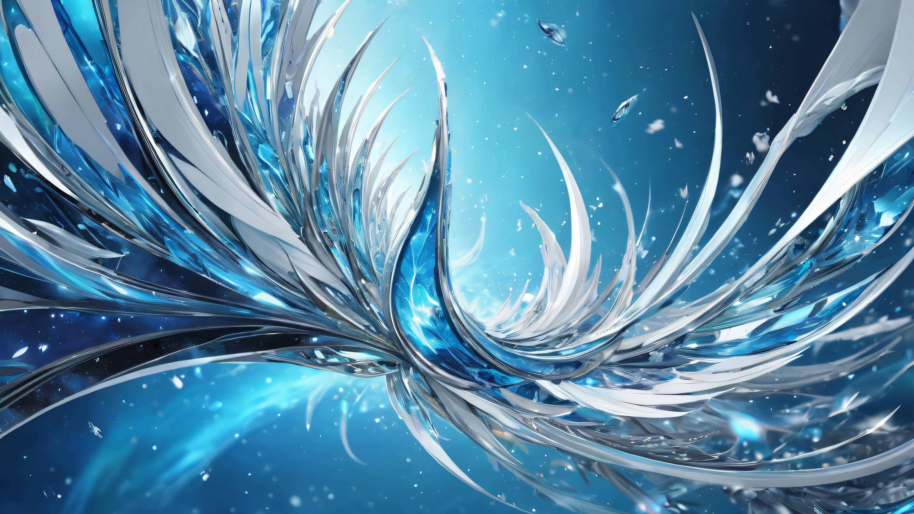 A breathtaking desktop wallpaper of Eve (Stellar Blade), perfectly clean vast pure void, extreme depth of field, award-winning digital art, pristine clarity, ETHEREAL LIGHTING. Radiant, brilliant colors, ray traced reflections, and pristine clarity. Bright and airy., dominant blues and silvers, 16:9 aspect ratio, ethereal lighting, radiant, brilliant colors, ray traced reflections, pristine clarity, award-winning digital art, epic breathtaking scale, stunning visual impact, perfect composition, highly textured surfaces, intricate micro-details, physically based rendering, macOS wallpaper aesthetic, masterpiece, highest quality, highly detailed, 8k resolution.