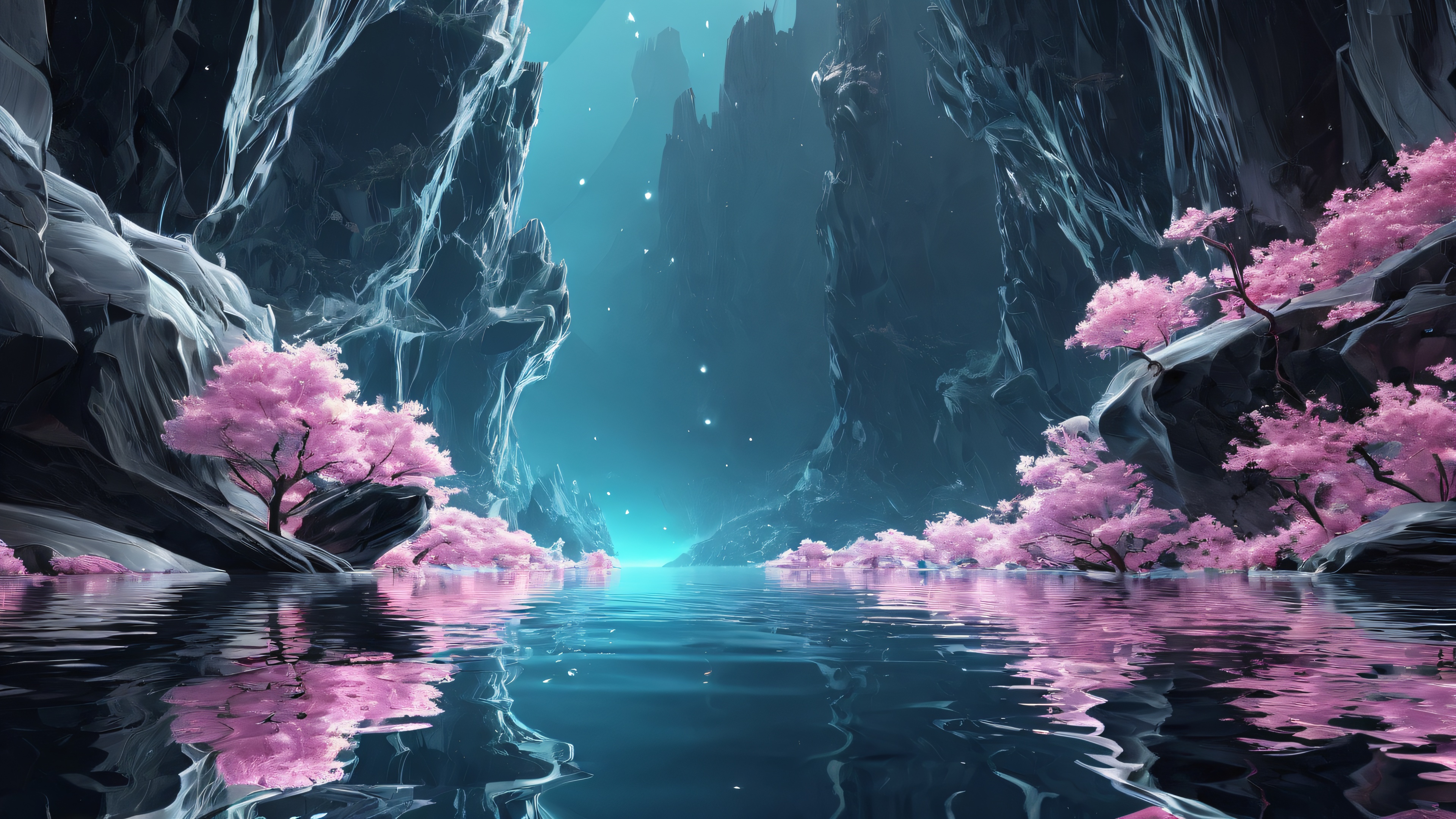 This breathtaking digital artwork transports you to an otherworldly realm of pristine clarity and radiant light. The extreme depth of field creates a sense of epic scale, while the ray traced reflections add a touch of tactile realism. The composition is masterfully crafted, with intricate micro-details that reward close inspection.