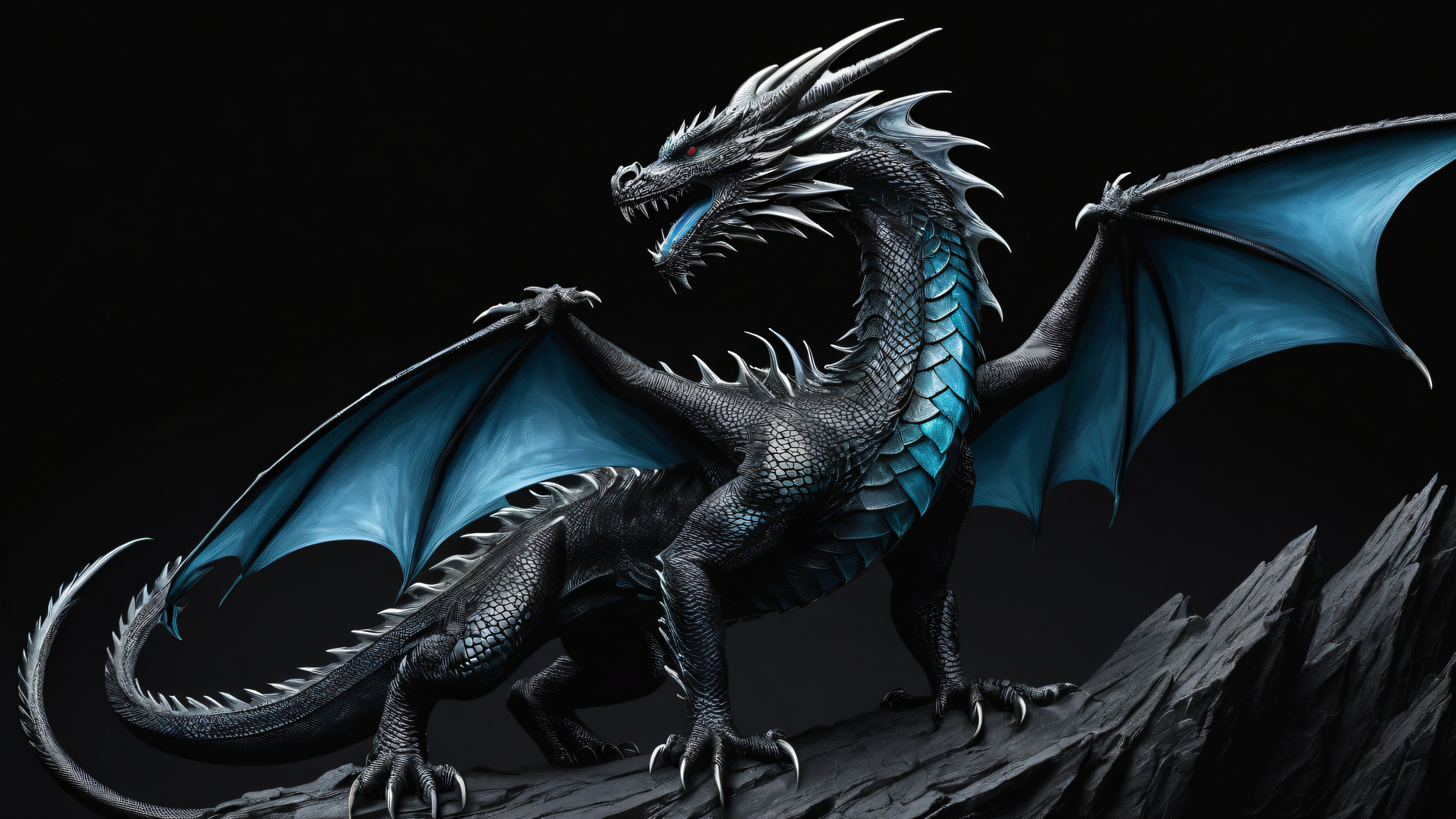 A breathtaking desktop wallpaper of Dragon, A perfectly clean vast pure void with extreme depth of field, allowing the dragon to stand out against a stark background, Award-winning digital art with pristine clarity, showcasing intricate details and textures, SLEEK DARK MODE AESTHETIC: Deep perfect blacks, striking crisp contrast, and elegant luminescent accents, [‘Ice Blue’, ‘Snow White’, ‘Metallic Grey’], 16:9 aspect ratio, elegant low-key lighting, deep perfect blacks, striking contrast, sleek dark mode aesthetic, luminescent accents, deep rich colors, award-winning digital art, epic breathtaking scale, stunning visual impact, perfect composition, highly textured surfaces, intricate micro-details, physically based rendering, macOS wallpaper aesthetic, masterpiece, highest quality, highly detailed, 8k resolution.