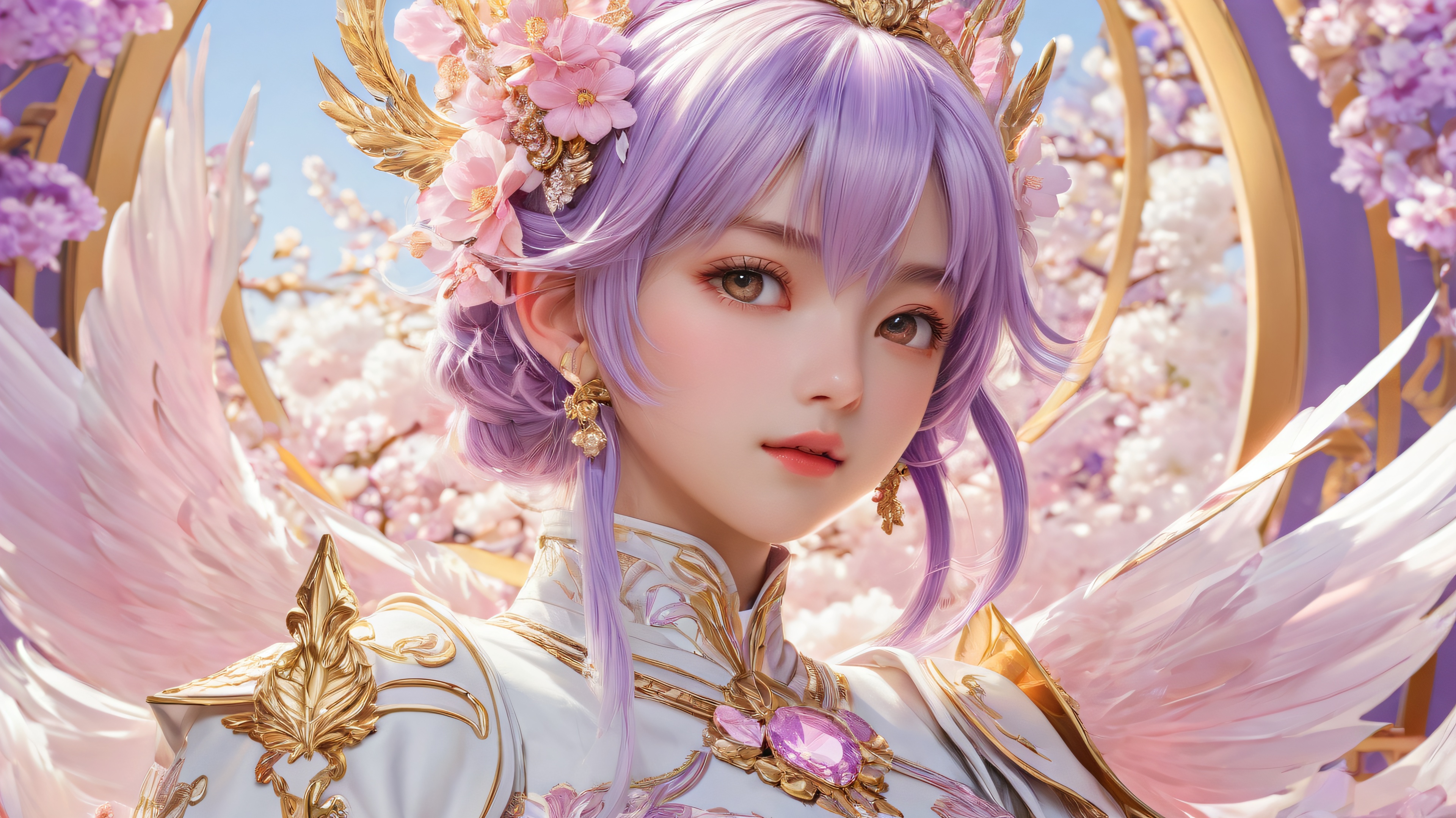 A breathtaking desktop wallpaper of Centered Anime Character, Perfectly clean vast pure void with extreme depth of field, Award-winning digital art, pristine clarity with vibrant colors and intricate details, Ethereal lighting with radiant, brilliant colors, ray-traced reflections, and pristine clarity. Bright and airy., Dominant palette: pastel pink, lavender, and cream with subtle hints of gold, 16:9 aspect ratio, ethereal lighting, radiant, brilliant colors, ray traced reflections, pristine clarity, award-winning digital art, epic breathtaking scale, stunning visual impact, perfect composition, highly textured surfaces, intricate micro-details, physically based rendering, macOS wallpaper aesthetic, masterpiece, highest quality, highly detailed, 8k resolution.