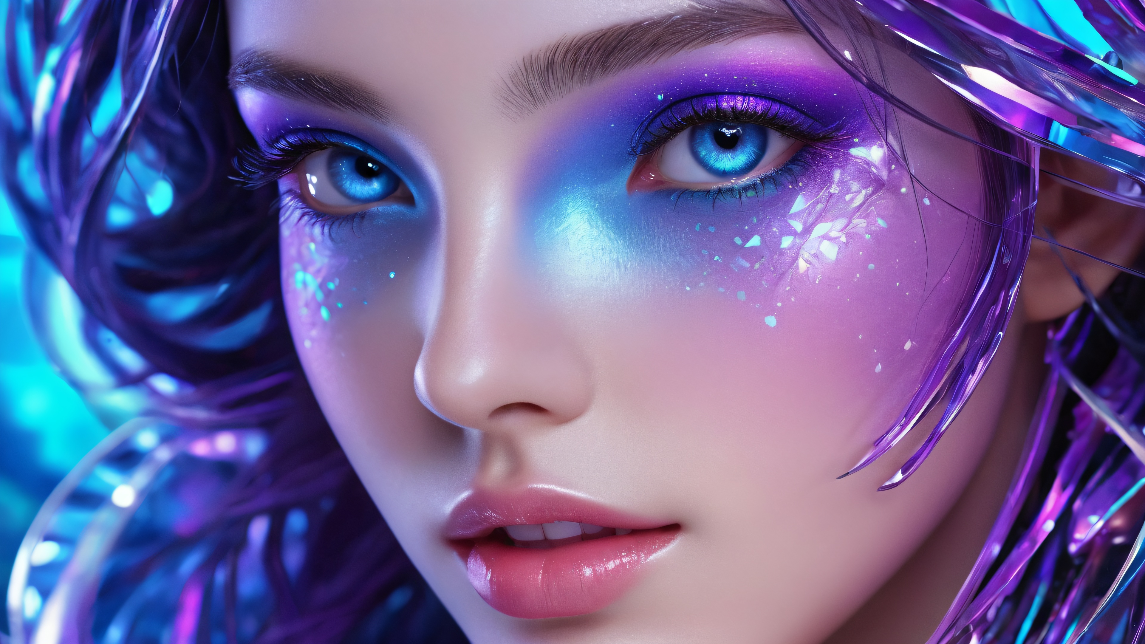 A breathtaking desktop wallpaper of detailed face, perfectly clean vast pure void, extreme depth of field, award-winning digital art, pristine clarity, ETHEREAL LIGHTING. Radiant, brilliant colors, ray traced reflections, and pristine clarity. Bright and airy., Neon blues and purples, 16:9 aspect ratio, ethereal lighting, radiant, brilliant colors, ray traced reflections, pristine clarity, award-winning digital art, epic breathtaking scale, stunning visual impact, perfect composition, highly textured surfaces, intricate micro-details, physically based rendering, macOS wallpaper aesthetic, masterpiece, highest quality, highly detailed, 8k resolution.