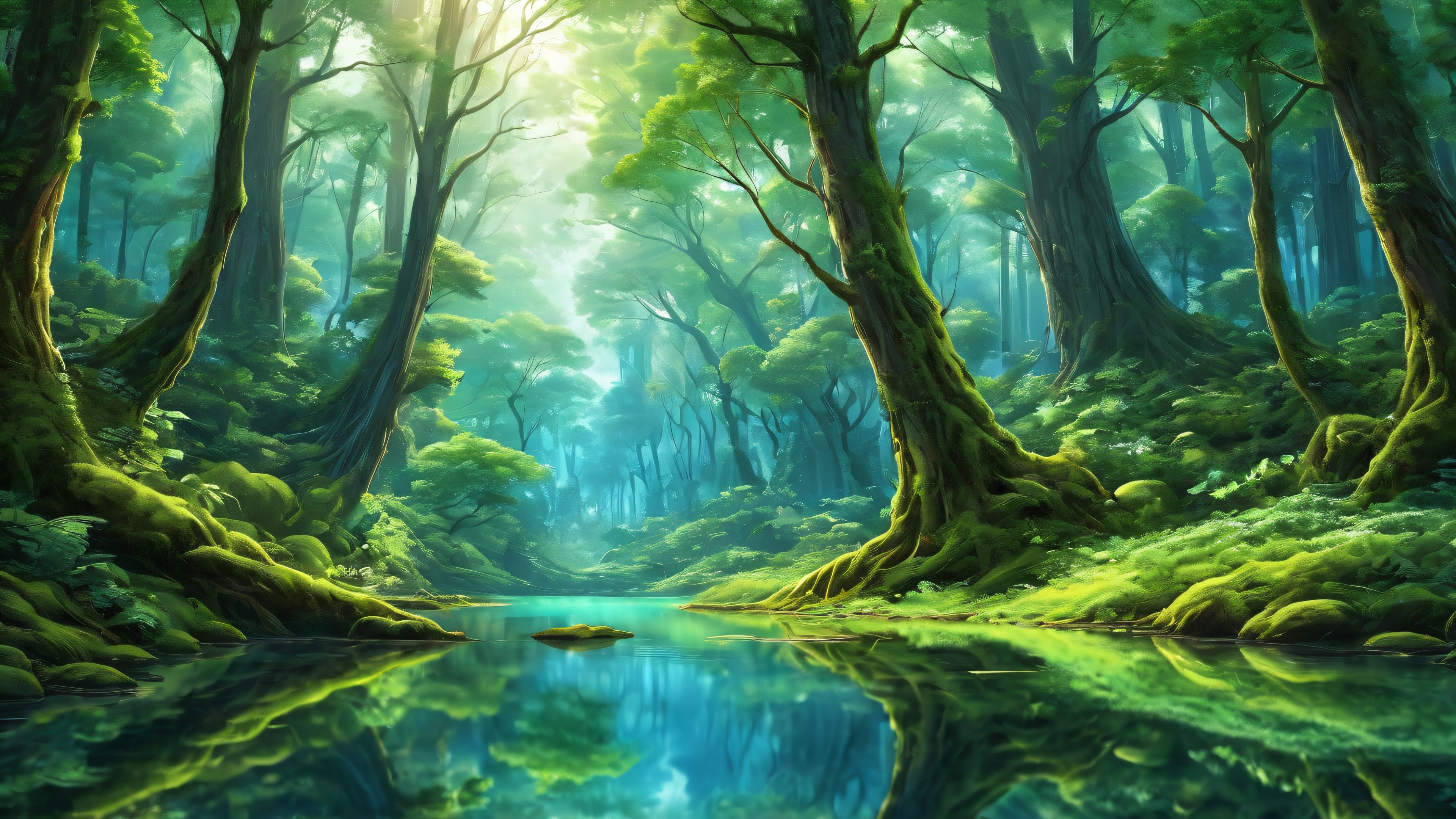 A breathtaking desktop wallpaper of Forest, Perfectly clean vast pure void, extreme depth of field, Award-winning digital art, pristine clarity, Ethereal lighting. Radiant, brilliant colors, ray traced reflections, and pristine clarity. Bright and airy., [‘Green’, ‘Blue’, ‘White’], 16:9 aspect ratio, ethereal lighting, radiant, brilliant colors, ray traced reflections, pristine clarity, award-winning digital art, epic breathtaking scale, stunning visual impact, perfect composition, highly textured surfaces, intricate micro-details, physically based rendering, macOS wallpaper aesthetic, masterpiece, highest quality, highly detailed, 8k resolution.