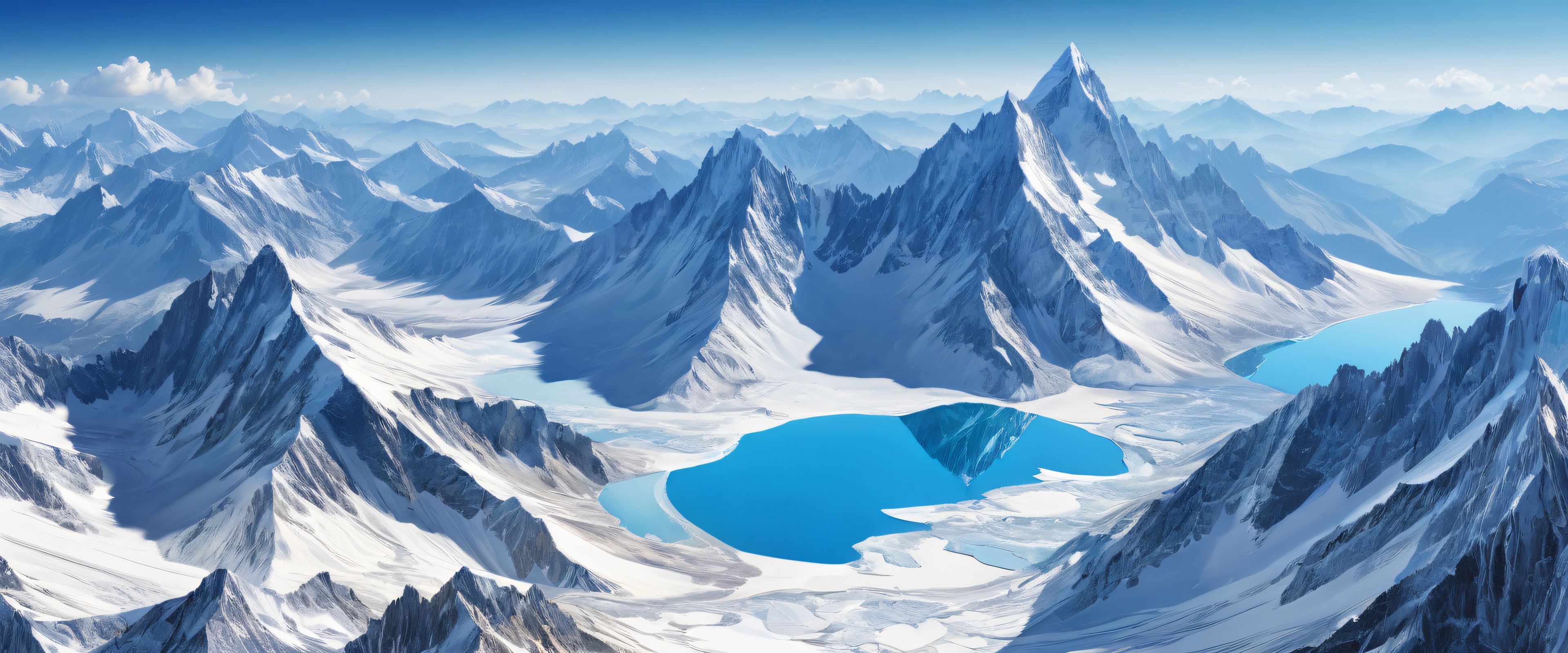 A breathtaking desktop wallpaper of mountains, perfectly clean vast pure void, extreme depth of field, award-winning digital art, pristine clarity, ETHEREAL LIGHTING. Radiant, brilliant colors, ray traced reflections, and pristine clarity. Bright and airy., cool blues and whites, 21:9 ultrawide panoramic aspect ratio, epic wide shot, ethereal lighting, radiant, brilliant colors, ray traced reflections, pristine clarity, award-winning digital art, epic breathtaking scale, stunning visual impact, perfect composition, highly textured surfaces, intricate micro-details, physically based rendering, macOS wallpaper aesthetic, masterpiece, highest quality, highly detailed, 8k resolution.