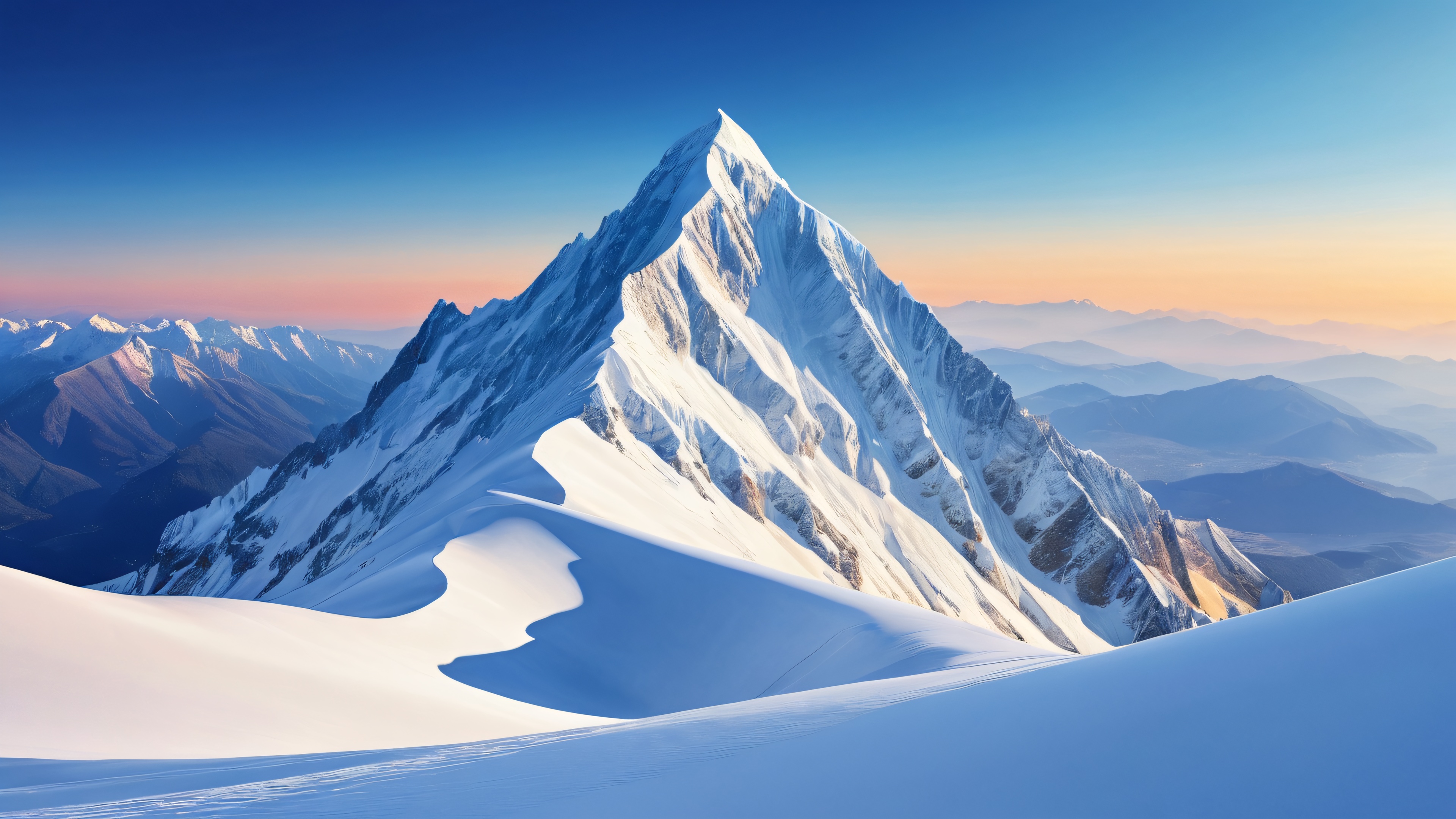 A breathtaking desktop wallpaper of snowy mountain, perfectly clean vast pure void, extreme depth of field with a clear sky and snowy mountain backdrop, award-winning digital art, pristine clarity, ETHEREAL LIGHTING with radiant sunlight, brilliant colors, ray traced reflections, and pristine clarity. Bright and airy., [‘cool whites’, ‘soft blues’], 16:9 aspect ratio, ethereal lighting, radiant, brilliant colors, ray traced reflections, pristine clarity, award-winning digital art, epic breathtaking scale, stunning visual impact, perfect composition, highly textured surfaces, intricate micro-details, physically based rendering, macOS wallpaper aesthetic, masterpiece, highest quality, highly detailed, 8k resolution.