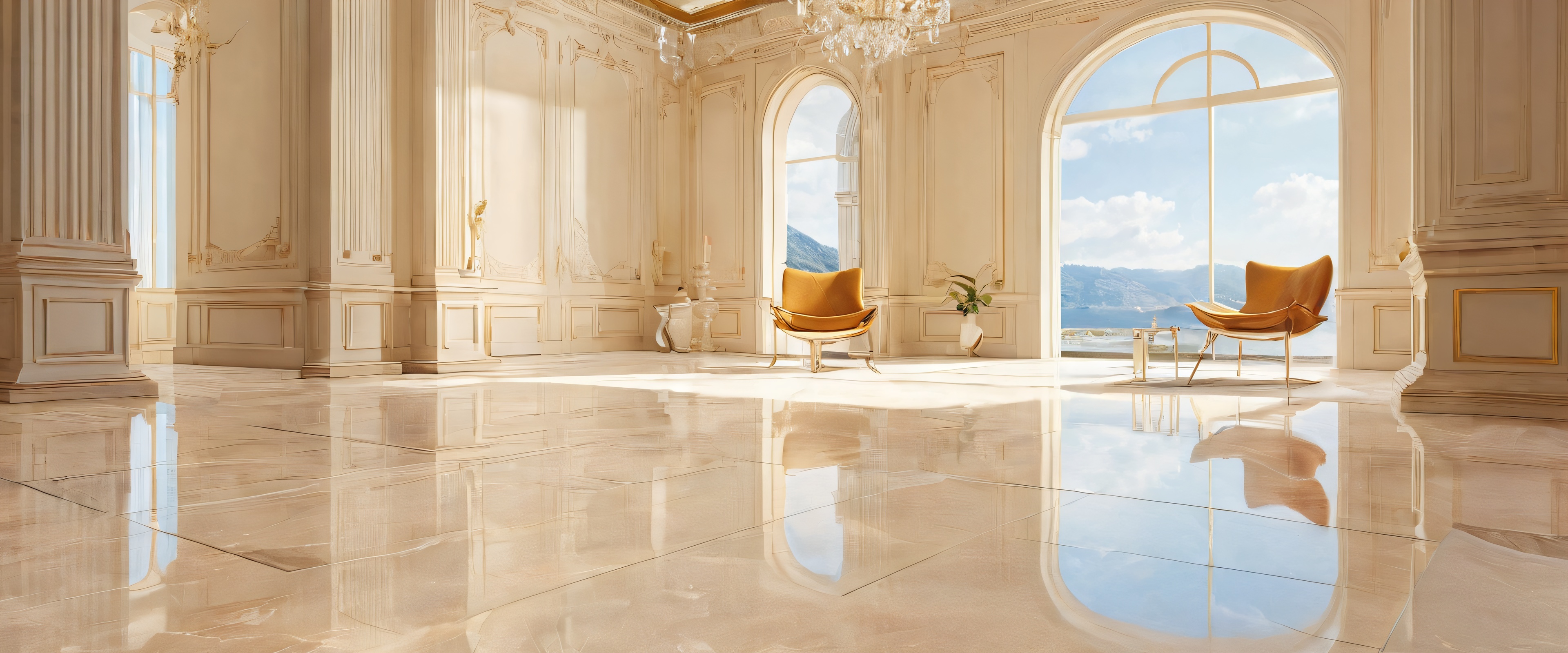 A breathtaking desktop wallpaper of man, perfectly clean vast pure void, extreme depth of field, beige tile flooring, award-winning digital art, pristine clarity, ETHEREAL LIGHTING. Radiant, brilliant colors, ray traced reflections, and pristine clarity. Bright and airy., [‘warm’, ‘beige’, ‘neutral’], 21:9 ultrawide panoramic aspect ratio, epic wide shot, ethereal lighting, radiant, brilliant colors, ray traced reflections, pristine clarity, award-winning digital art, epic breathtaking scale, stunning visual impact, perfect composition, highly textured surfaces, intricate micro-details, physically based rendering, macOS wallpaper aesthetic, masterpiece, highest quality, highly detailed, 8k resolution.