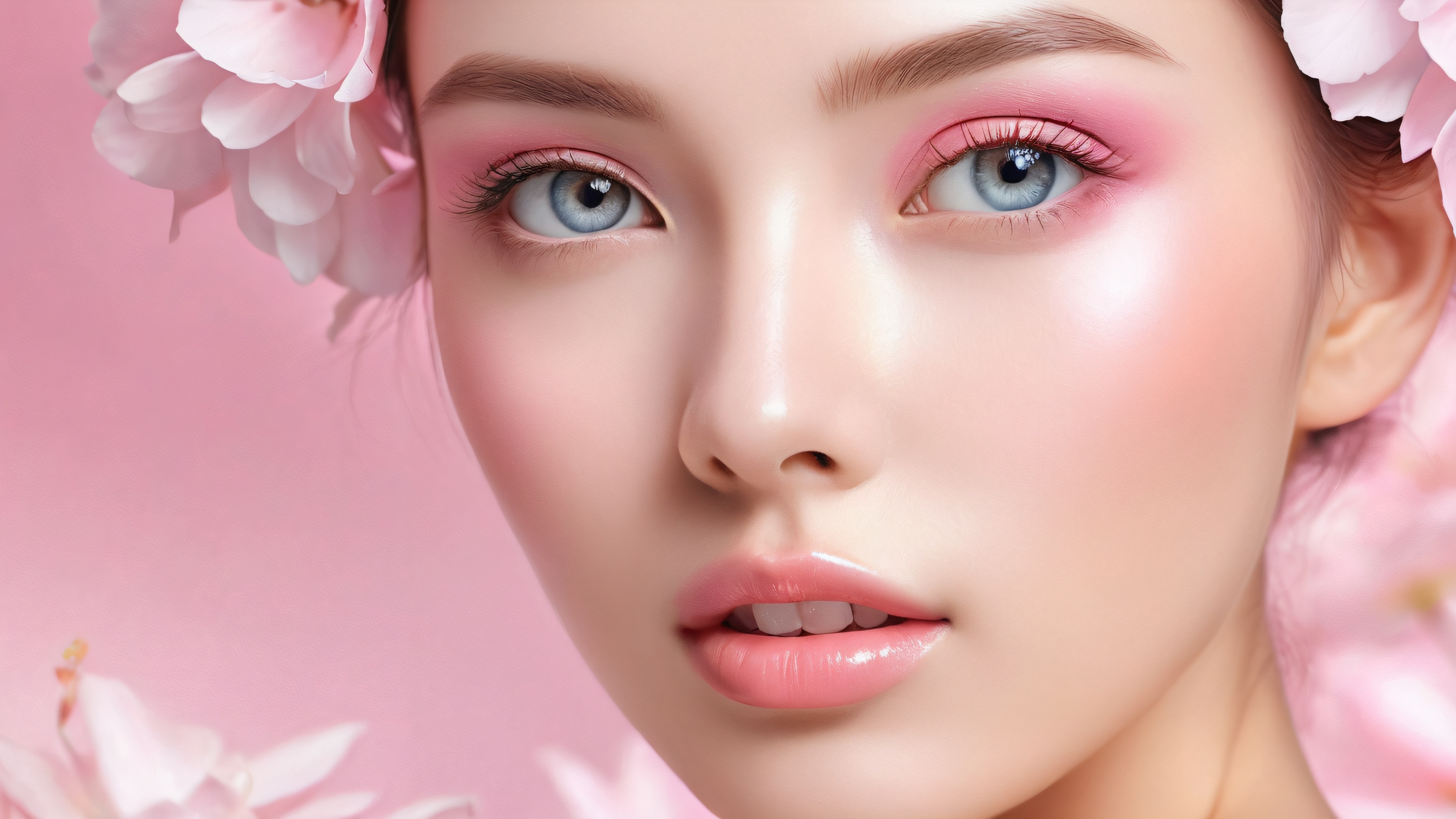 A stunning digital art masterpiece that transports you to an otherworldly oasis, where soft pinkish hues and creamy whites blend in perfect harmony. The extreme depth of field creates a sense of epic scale, while the ethereal lighting imbues the scene with a radiant, brilliant glow. Ray-traced reflections add a layer of pristine clarity, making this 16:9 aspect ratio wallpaper a true marvel.