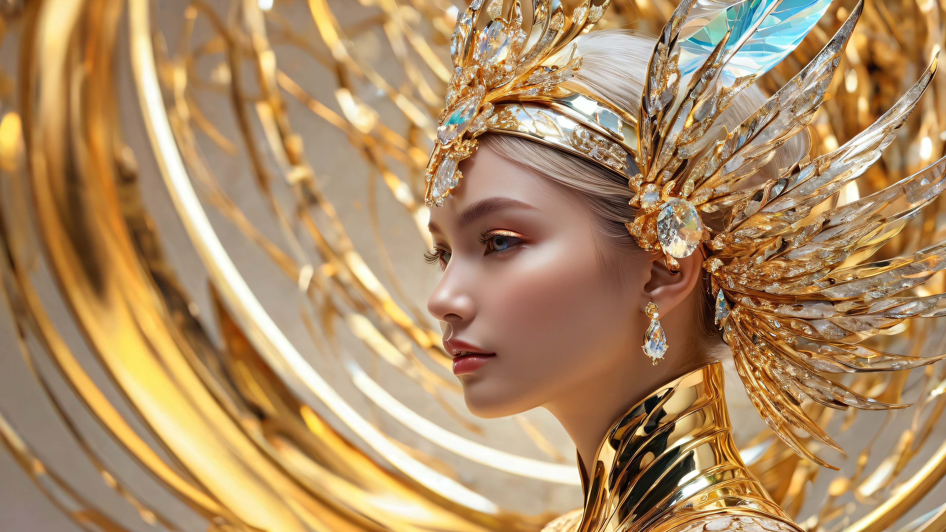 A breathtaking desktop wallpaper of {‘centered’: ‘Prestigious Woman’}, Perfectly clean vast pure void, extreme depth of field, Award-winning digital art, pristine clarity, Ethereal lighting with radiant, brilliant colors, ray traced reflections, and pristine clarity. Bright and airy., [‘Gold’, ‘Tan’, ‘Neon’], 16:9 aspect ratio, ethereal lighting, radiant, brilliant colors, ray traced reflections, pristine clarity, award-winning digital art, epic breathtaking scale, stunning visual impact, perfect composition, highly textured surfaces, intricate micro-details, physically based rendering, macOS wallpaper aesthetic, masterpiece, highest quality, highly detailed, 8k resolution.