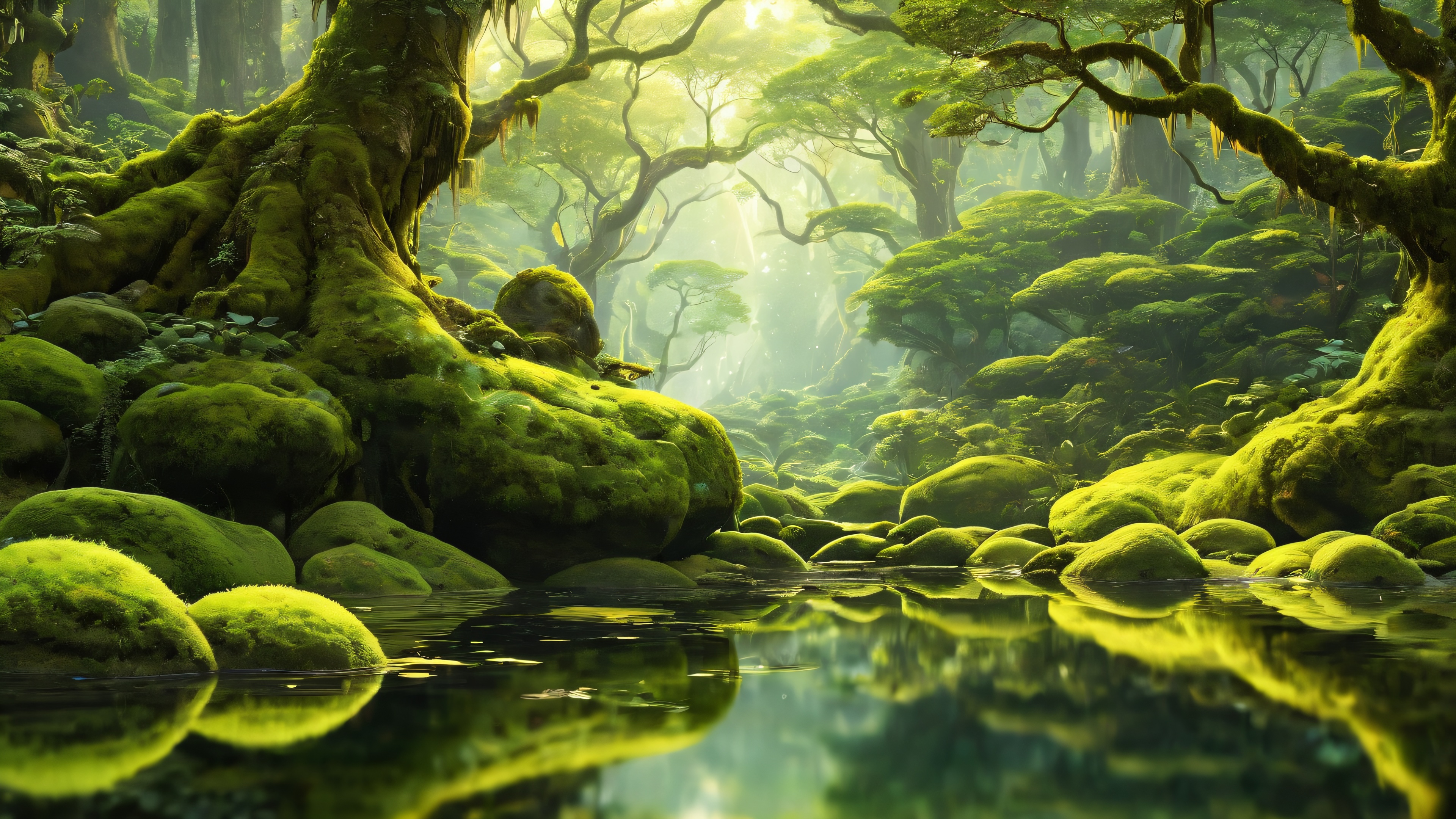 A breathtaking desktop wallpaper of Magical being, perfectly clean vast pure void, extreme depth of field, award-winning digital art, pristine clarity, Ethereal Lighting: Radiant, brilliant colors, ray traced reflections, and pristine clarity. Bright and airy., [‘Mossy greens’, ‘Warm golden hues’], 16:9 aspect ratio, ethereal lighting, radiant, brilliant colors, ray traced reflections, pristine clarity, award-winning digital art, epic breathtaking scale, stunning visual impact, perfect composition, highly textured surfaces, intricate micro-details, physically based rendering, macOS wallpaper aesthetic, masterpiece, highest quality, highly detailed, 8k resolution.