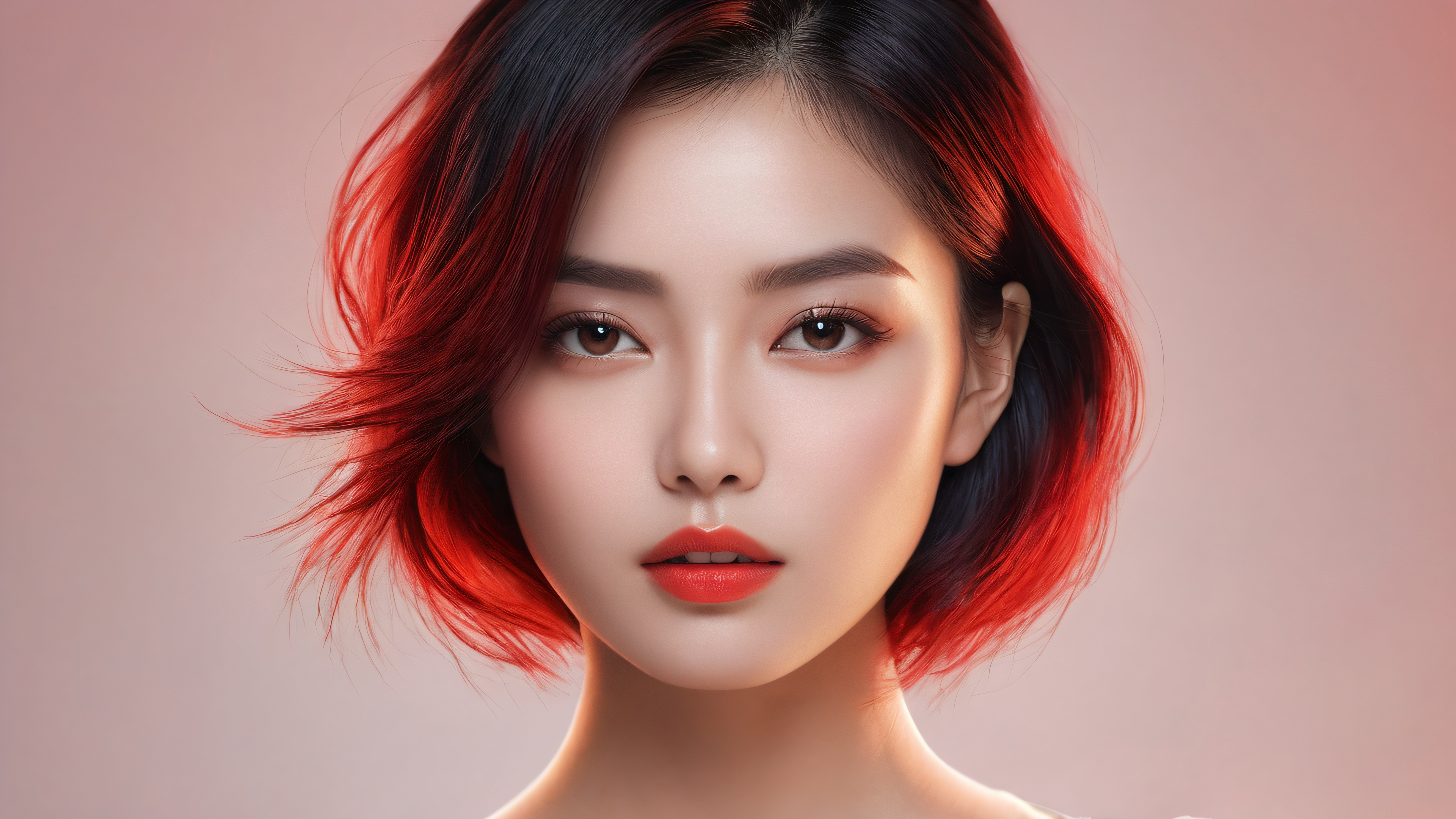 A breathtaking desktop wallpaper of Portrait of a Woman, Perfectly clean vast pure void, extreme depth of field, with an emphasis on subtle lighting and textures, Award-winning digital art, pristine clarity, showcasing mastery of Blender and CGI techniques, Ethereal lighting with radiant, brilliant colors, ray-traced reflections, and pristine clarity. Bright and airy., #000000 (Black) and #FF0000 (Red) dominant palette, 16:9 aspect ratio, ethereal lighting, radiant, brilliant colors, ray traced reflections, pristine clarity, award-winning digital art, epic breathtaking scale, stunning visual impact, perfect composition, highly textured surfaces, intricate micro-details, physically based rendering, macOS wallpaper aesthetic, masterpiece, highest quality, highly detailed, 8k resolution.